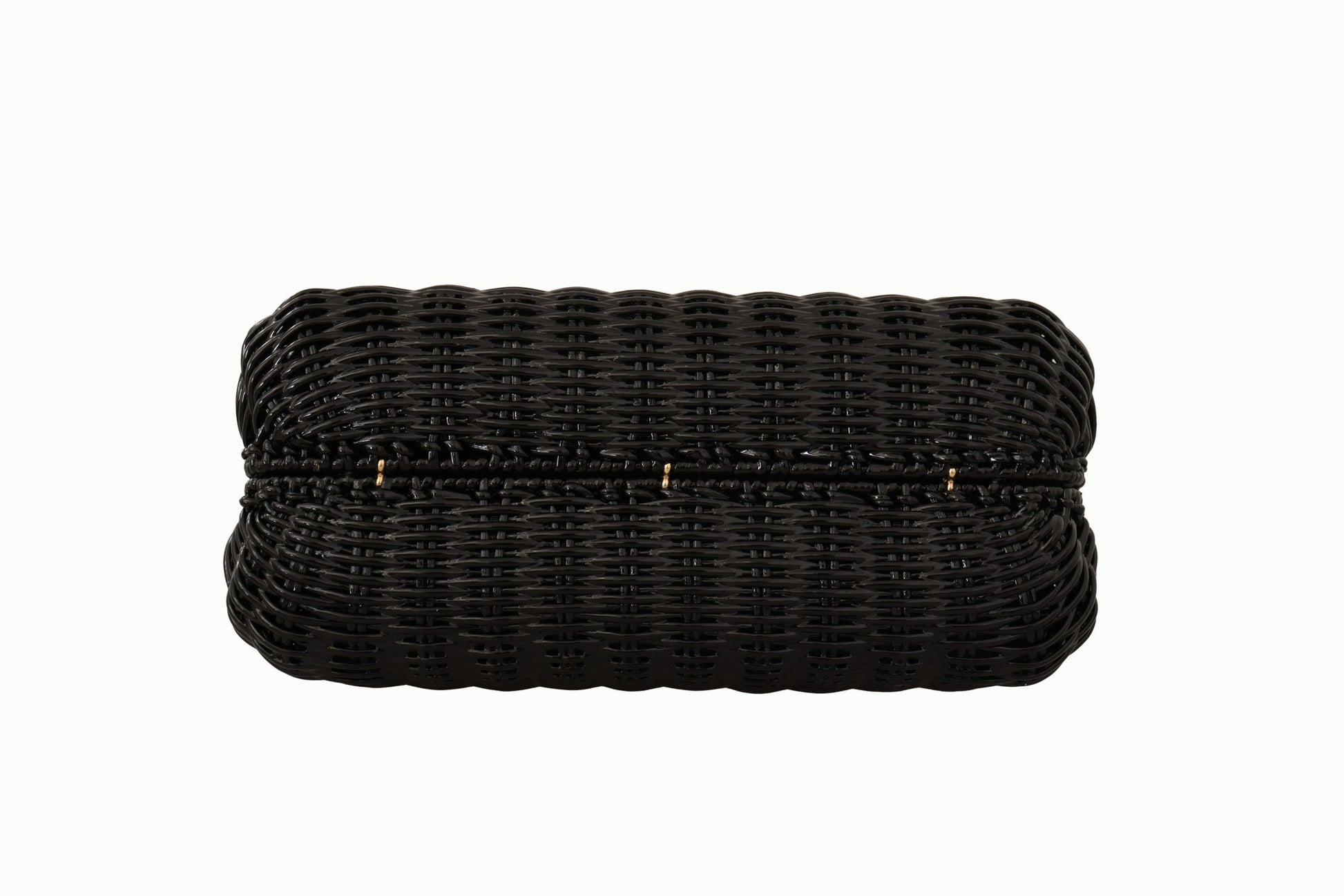 Accents: Gold-tone logo plaque, lacquered wicker basket body, logo engraved metal hardware