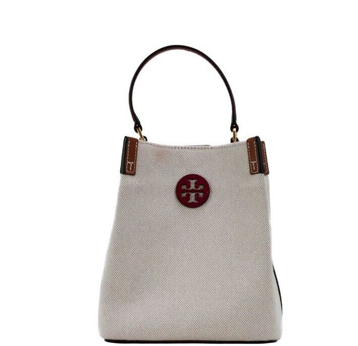 Blake Small Natural Tory Red Canvas Bucket Crossbody Handbag