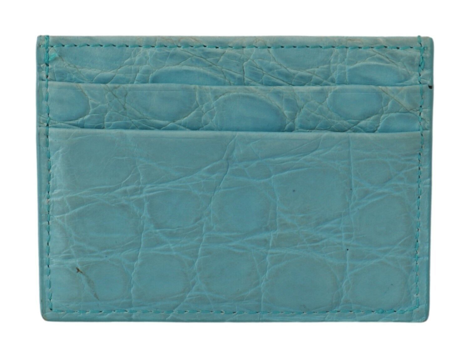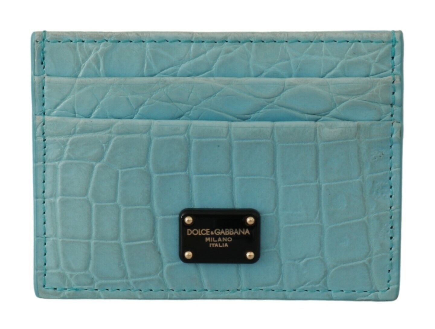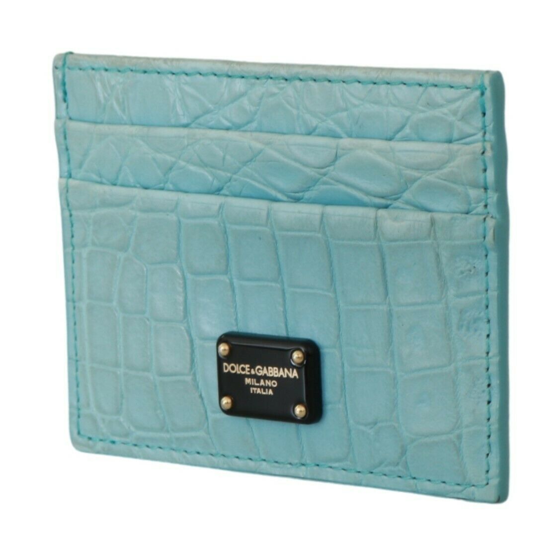 Indulge in the epitome of elegance with this gorgeous, brand new card holder wallet from the renowned house of Dolce & Gabbana. This exquisite accessory is not only a statement of style but also a testament to luxurious craftsmanship. Made from 100% authentic Caiman leather, it promises durability and an opulent touch. Featuring multiple cardholder slots to keep your essentials organized and secure, its light blue color offers a subtle yet distinctive charm that is sure to complement any ensemble. Accented with logo engraved metal hardware and crafted in Italy, this wallet embodies the class and quality Dolce & Gabbana is famous for.
