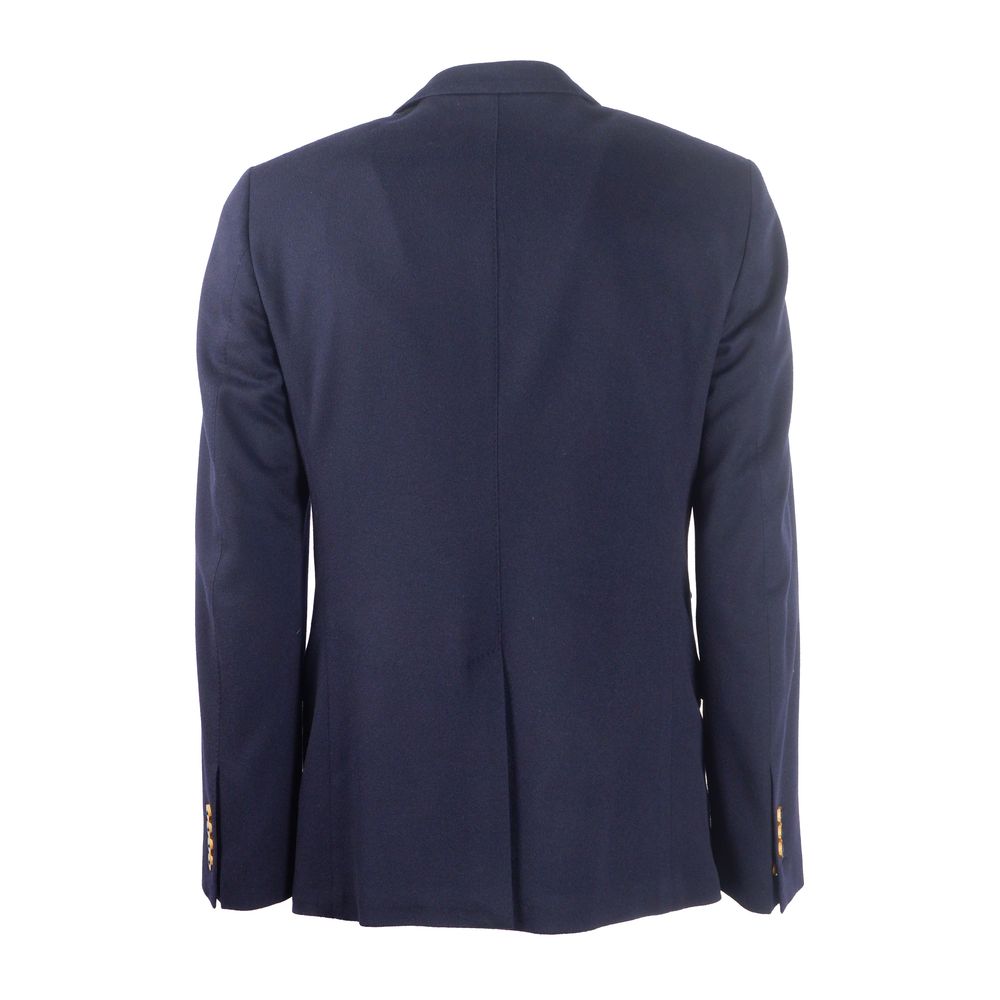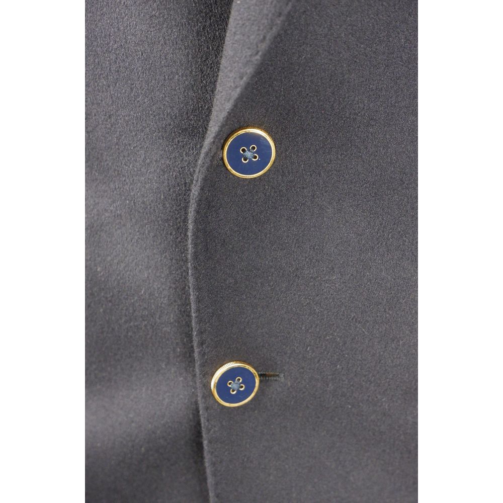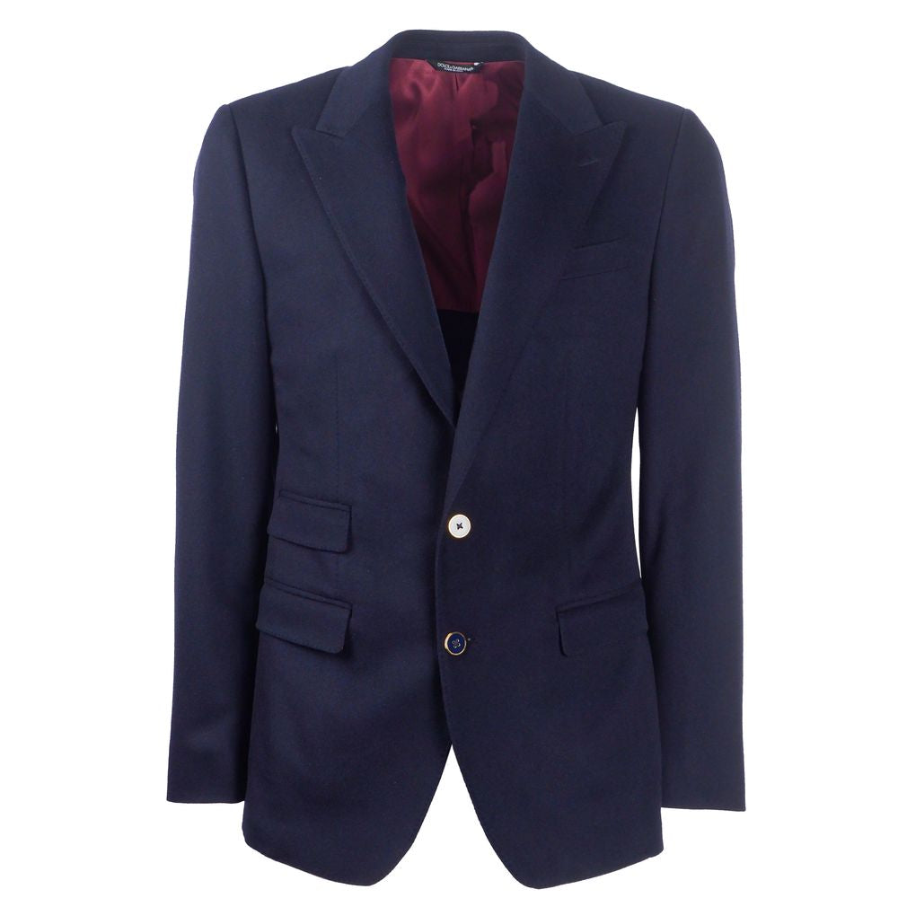 Indulge in the epitome of luxury with this Dolce & Gabbana dark blue cashmere jacket. The exquisite piece features a wine red silk lining that offers a touch of opulence, while the gleaming gold hardware buttons add a sophisticated charm. This jacket, crafted with precision in Italy, promises not only style but also a comfortable fit with its hint of elastane.