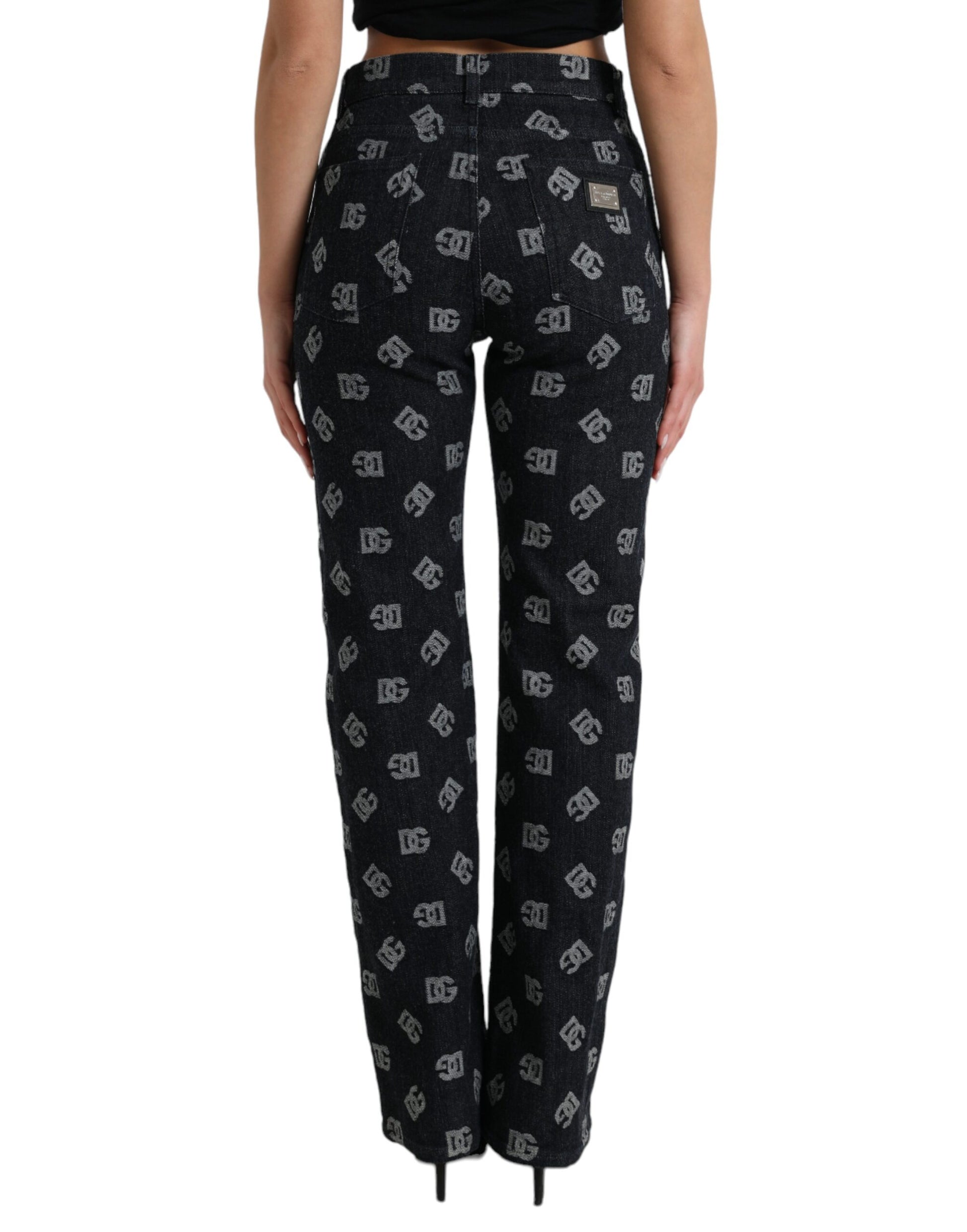 Indulge in the ultimate blend of Italian luxury and bold style with these Dolce & Gabbana high waist straight jeans. Featuring an all-over logo print, these jeans are a gorgeous addition to your wardrobe, ensuring you stand out with elegance. Crafted from a harmonious mix of cotton and elastane, they promise both high comfort and a flattering fit. The striking blue hue and meticulous made-in-Italy craftsmanship render these jeans a staple for fashion-forward individuals.
