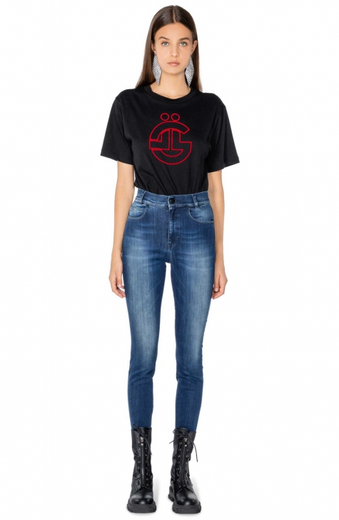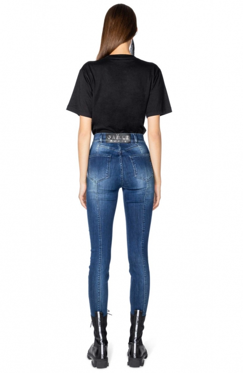 Accentuate your silhouette with these high-waist super skinny jeans, crafted for a sleek and flattering fit. Featuring a luxurious velvet patch on the back, these jeans combine chic style with comfortable stretch. Perfect for elevating your everyday denim game.