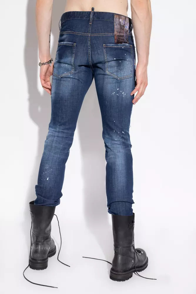 Step up your denim game with these striking Blue Distressed Jeans that merge comfort with a bold, artistic style. Designed for the fashion-forward individual, these jeans feature a unique white paint splatter effect and a vibrant multicolored patch that set you apart from the crowd. Crafted with a blend of high-quality fabrics to ensure stretch and durability, these jeans are tailored to taper neatly down your legs, offering a relaxed yet refined silhouette. Perfectly suited for multiple occasions, they are versatile enough to pair with your favorite tees or dress shirts. Complete with five practical slip pockets, they are as functional as they are stylish.
