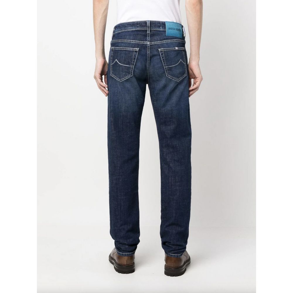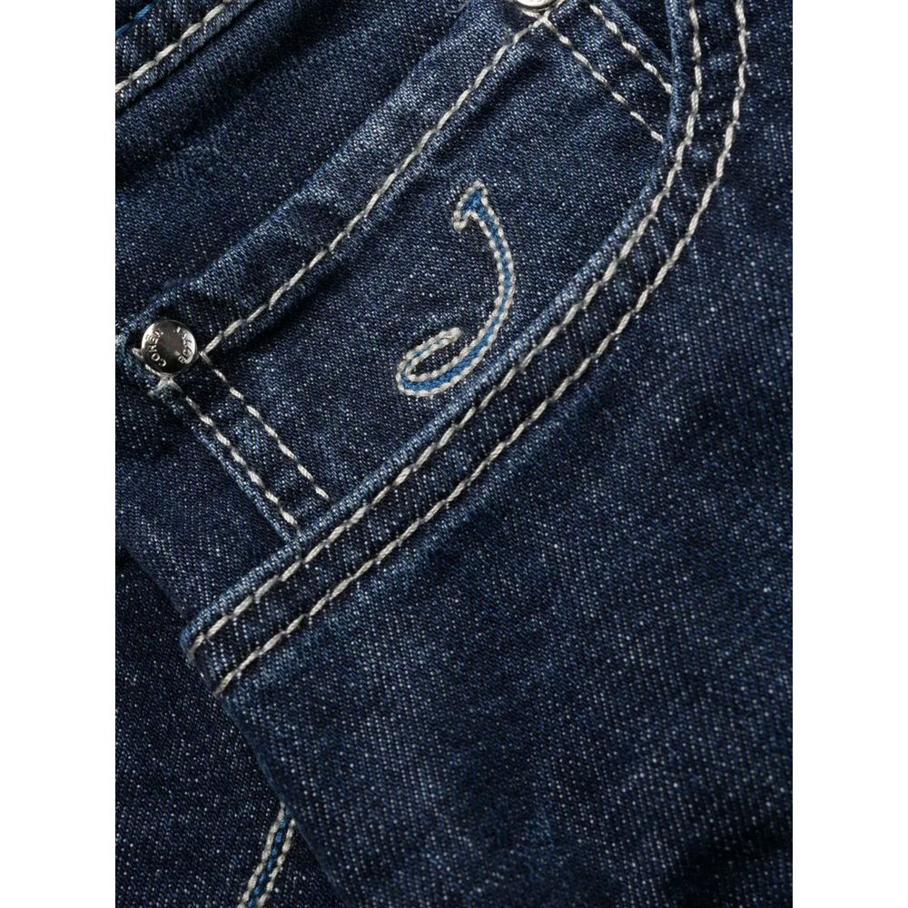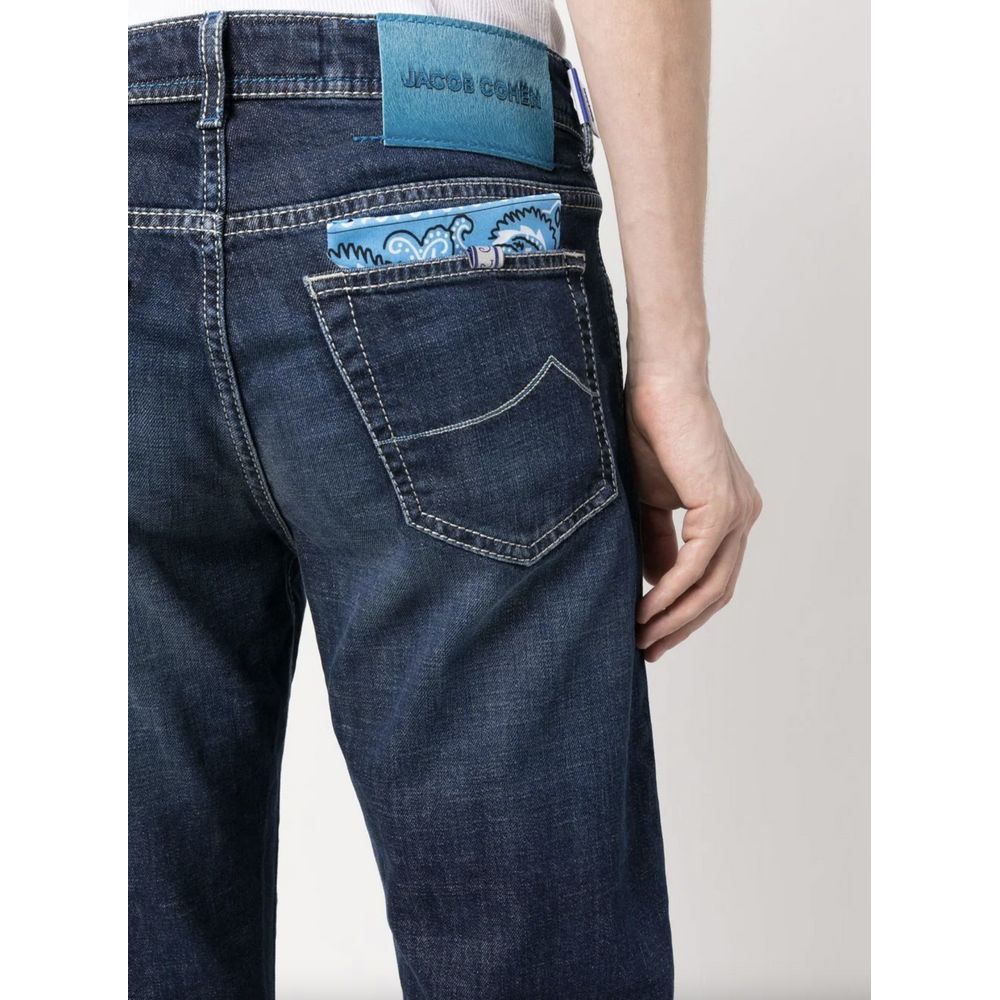 Embrace impeccable Italian craftsmanship with these indigo straight leg jeans, accented with a unique bandana detail for an elevated sartorial touch. Constructed from a cotton blend offering comfort with a hint of stretch, these jeans fuse classic style with modern flair, featuring front button and zip fastening, classic five pockets, and belt loops. Perfect for creating a distinguished casual ensemble.
