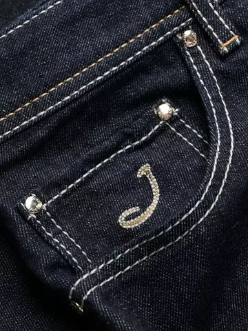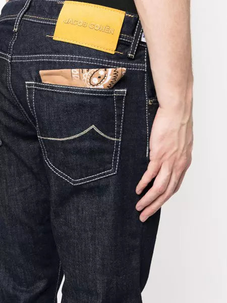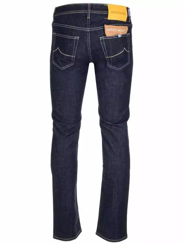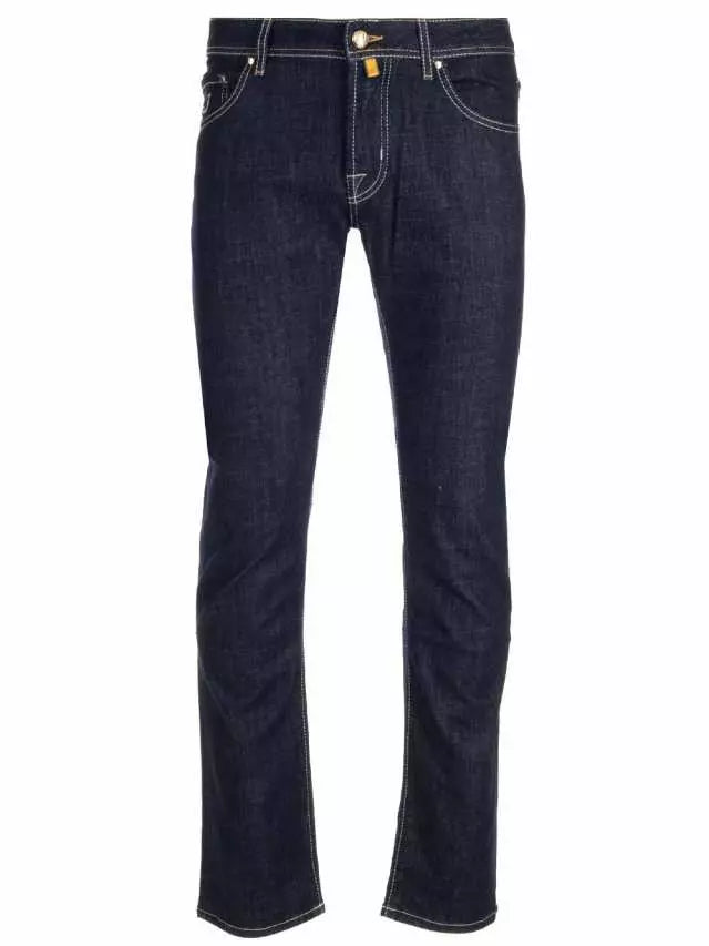 Discover the perfect blend of style and comfort with these dark blue slim-fit jeans. Featuring a classic five-pocket design embellished with distinctive logo embroidery on the pocket, these jeans are a testament to impeccable craftsmanship. Accentuated with a silver button closure and a yellow pony leather patch with embossed details, they exude luxury with a casual twist. Crafted in Italy from a superior mix of cotton and elastane, they offer both longevity and flexibility for the discerning gentleman.
