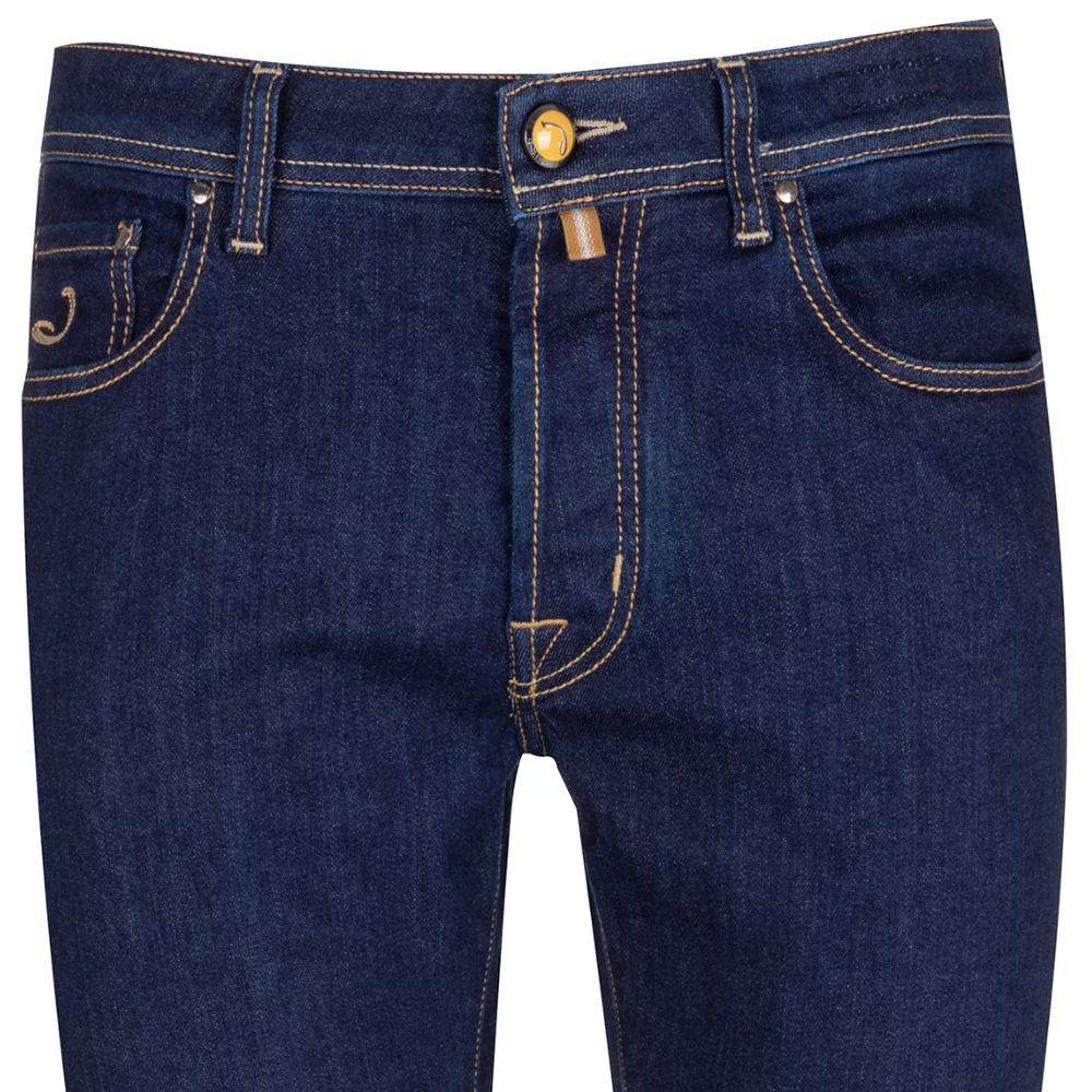 Discover the pinnacle of Italian craftsmanship with Jacob Cohen’s latest arrival – the dark blue Bard jeans. Tailored for the sophisticated individual, this five-pocket model boasts a luxe touch with its logo embroidery on the pocket. The radiant yellow button and yellow suede patch add a pop of color, complementing the exquisite detailing of these jeans. Crafted from a premium blend of cotton, elastomultiestere, and elastane, they promise unmatched comfort with a hint of stretch for ease of movement. Perfect for both casual gatherings and high-end soirees, they’re an essential addition to your refined wardrobe.