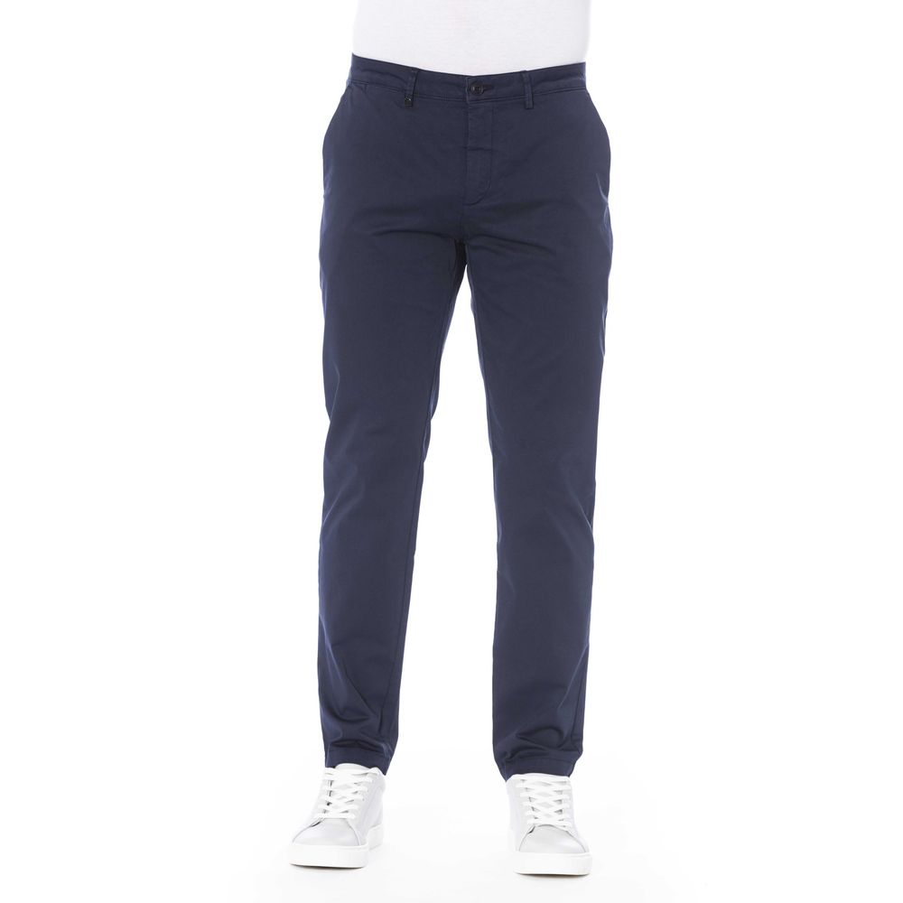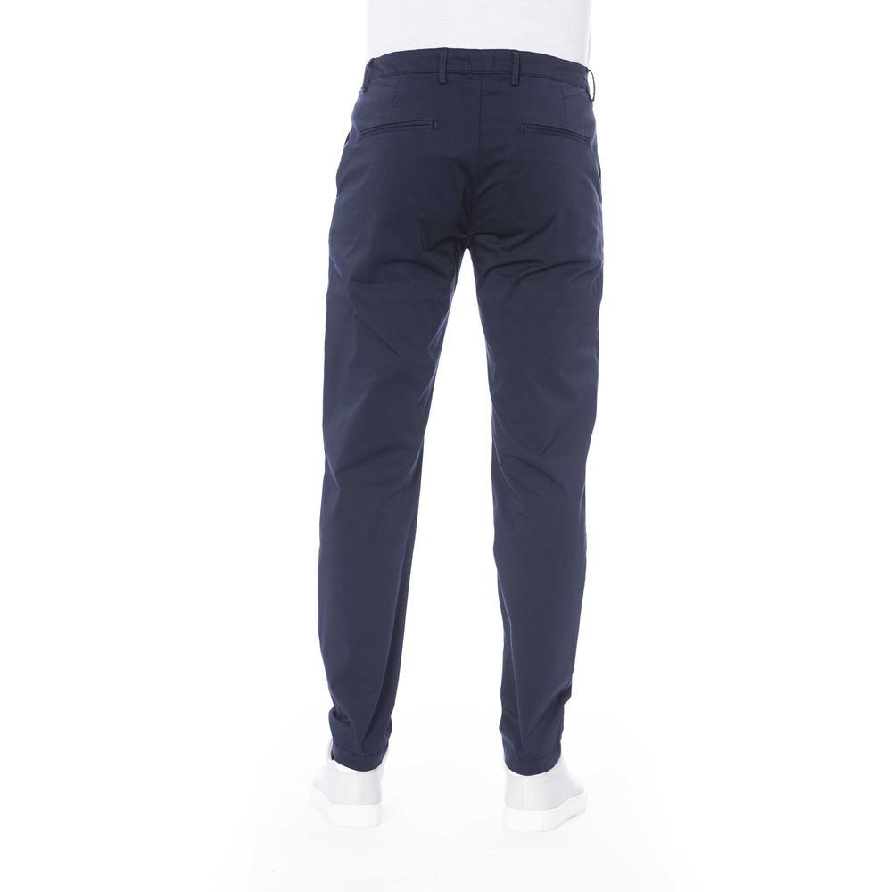 Indulge in the epitome of Italian craftsmanship with ‘Distretto12’s’ sleek pants, tailored for the modern man. These trousers’ slim fit and stretch-infused cotton blend promise both style and comfort, featuring a secure button closure, convenient side pockets, and refined back thread pockets. Their timeless blue hue adds a bold statement to any ensemble.
