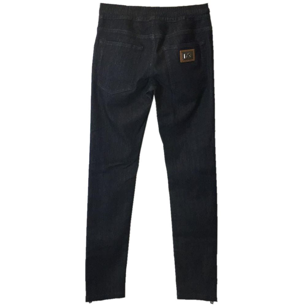 Dolce & Gabbana jeans in stretch cotton with drawstring waist, button and zip closure, zip opening on the ankles, five pockets, leather and metal logo patch on the back