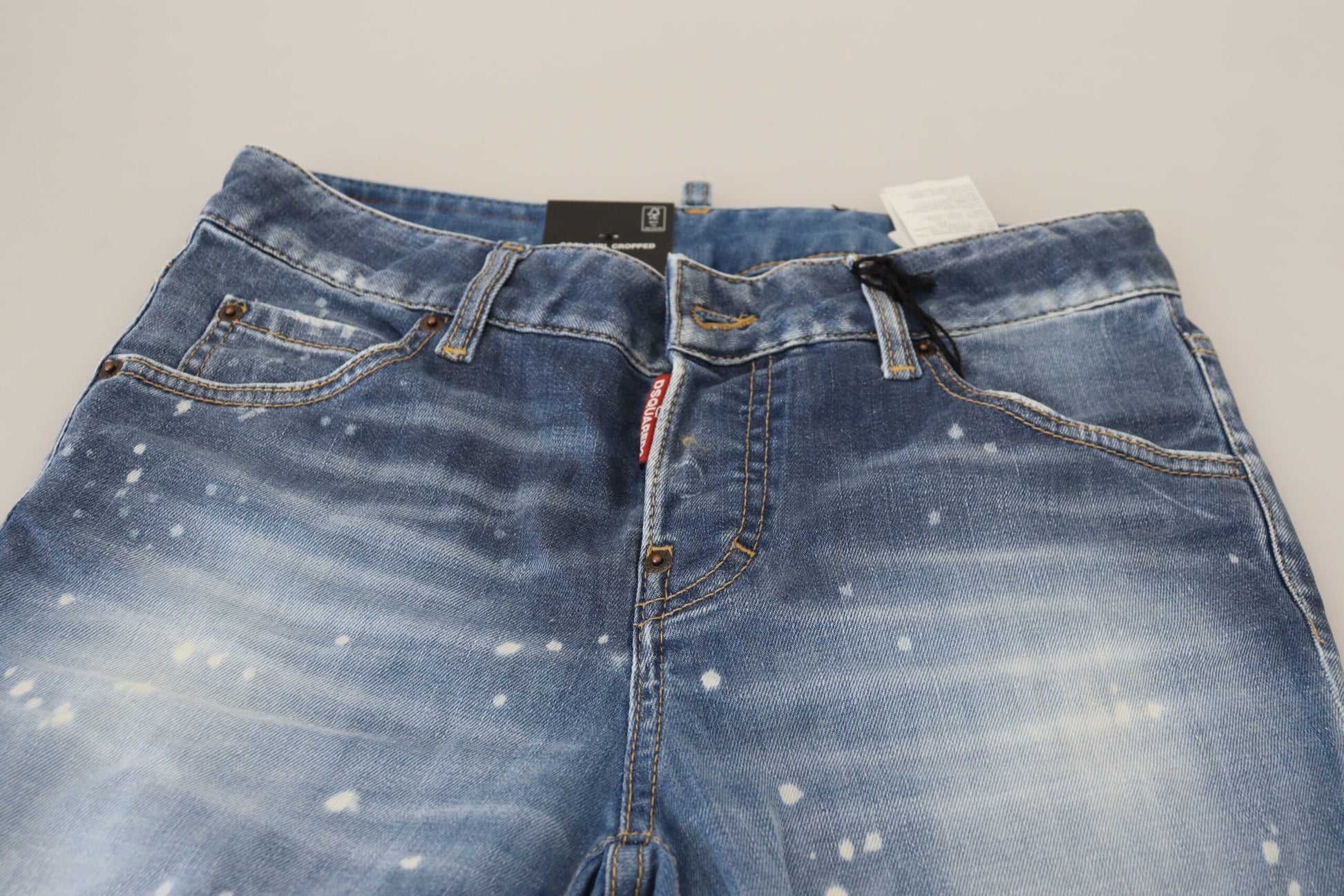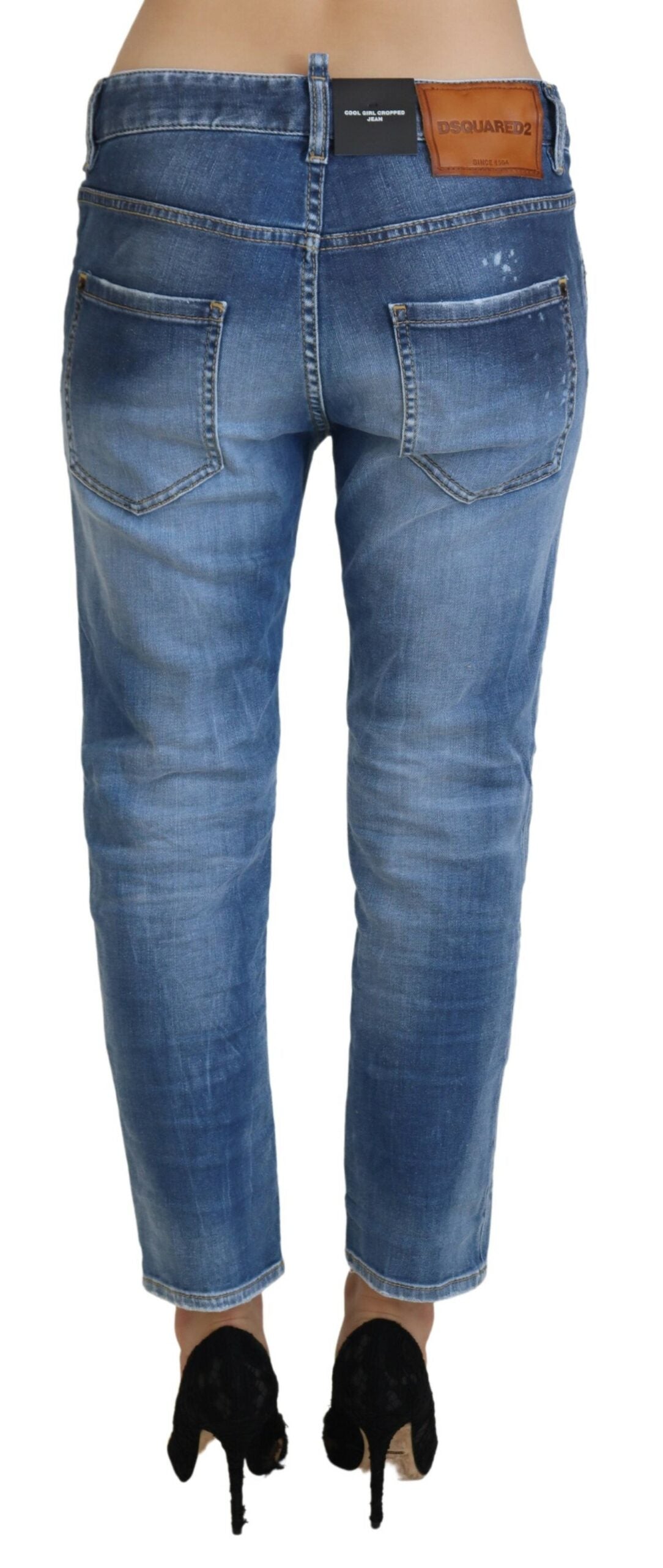 Embrace style and comfort with our exquisite low waist cropped denim jeans, a must-have for any fashion-savvy wardrobe. Crafted from high-quality materials, these jeans offer a regular fit that seamlessly contours your silhouette. The charming blue hue complements a variety of tops and accessories, making it a versatile choice for a range of occasions. Proudly made in Italy and adorned with the distinguished Dsquared² logo, these jeans resonate with luxury and high fashion.