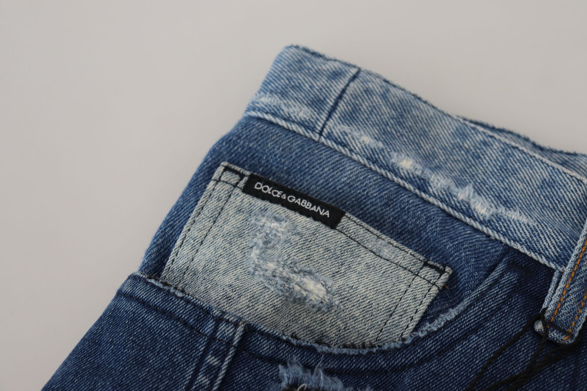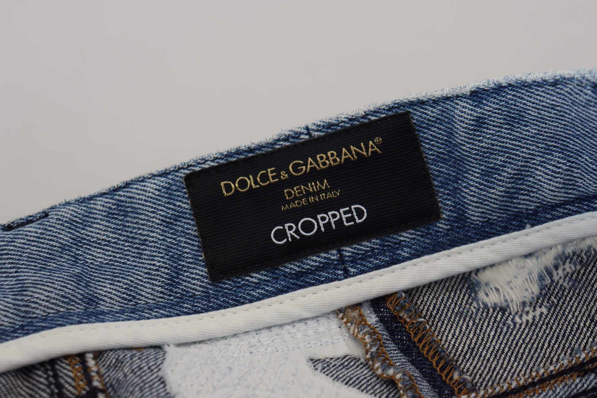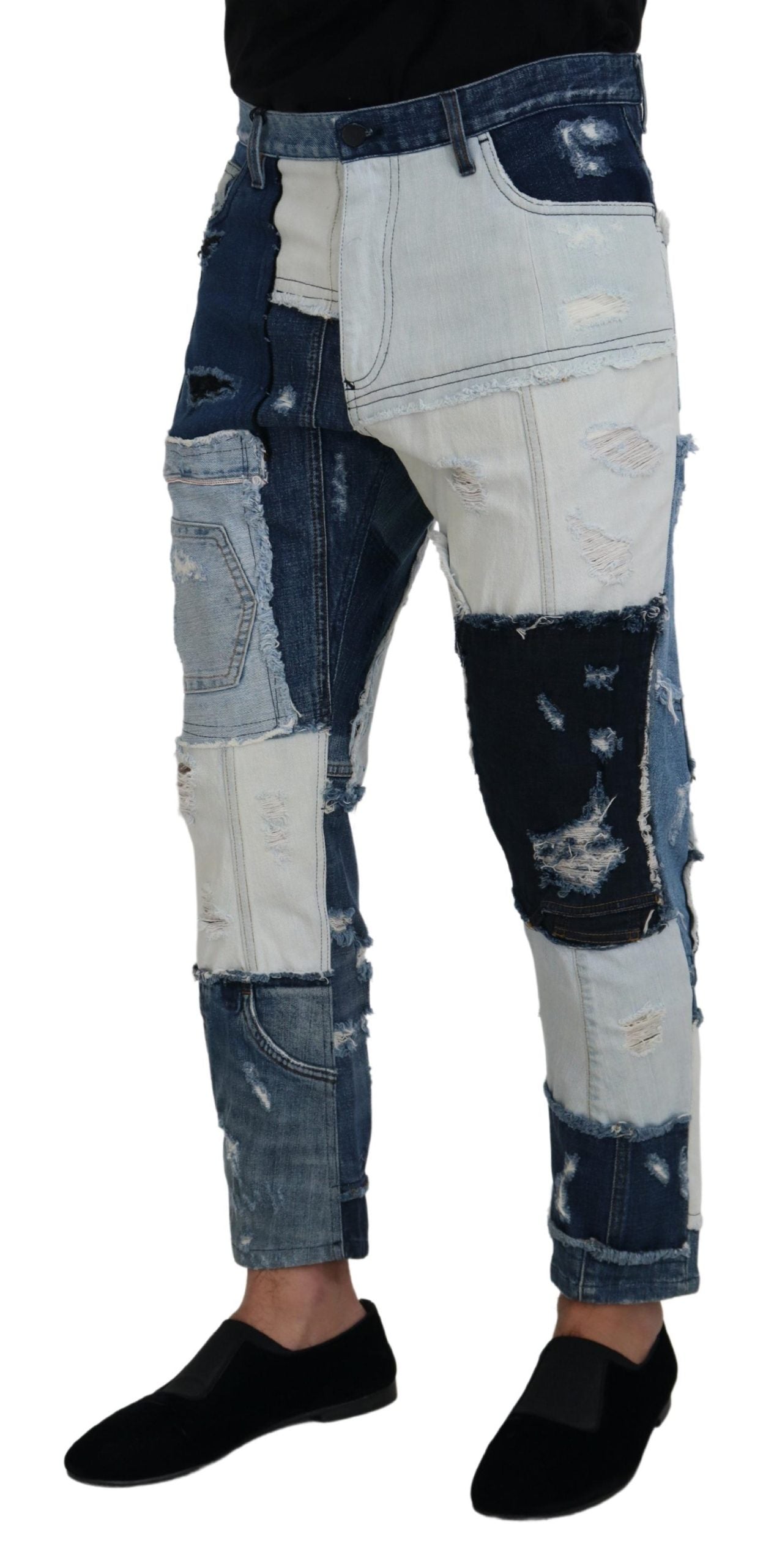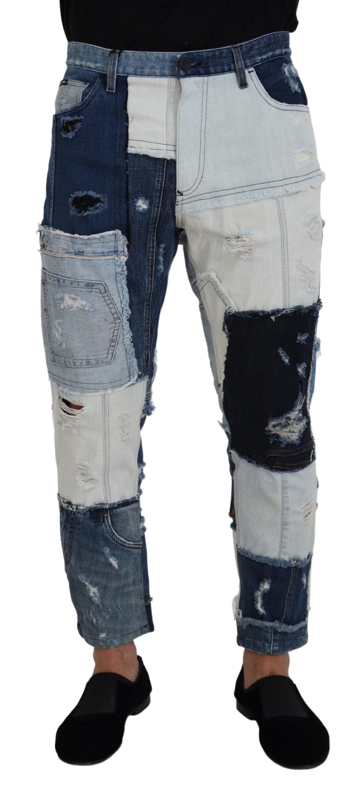 Discover the epitome of Italian craftsmanship with these Dolce & Gabbana Patchwork Jeans. Impeccably designed, these pants are not just garments but a statement of fashion and exclusivity. The detailed patchwork design in a serene blue presents a fresh take on classic denim. Crafted to provide comfort with a blend of cotton and elastane, these pants ensure a perfect fit with a tasteful zipper closure. Embodying luxury, each pair comes adorned with the iconic logo details, a testament to the brand’s renowned reputation for style.