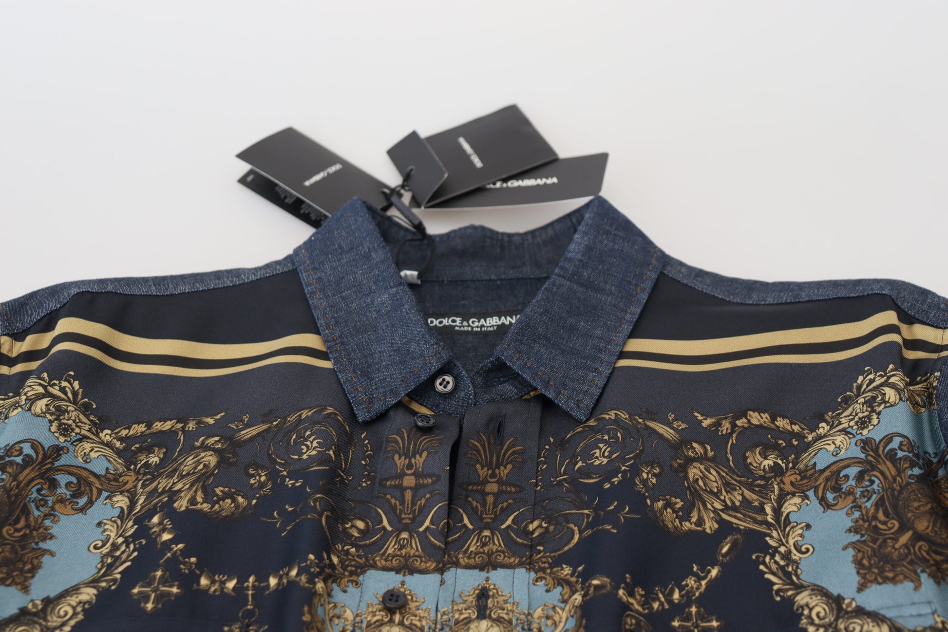 Discover the epitome of luxury Italian craftsmanship with this stunning shirt by Dolce & Gabbana. Perfect for the discerning gentleman, this shirt embodies elegance with its blue printed design, blending classic style with a modern aesthetic. Crafted from a sumptuous mix of cotton and silk, it ensures both comfort and a sleek drape. A collared neckline and long sleeves offer a timeless silhouette, while regular fit ensures a flattering wear. Accentuated with logo details, this shirt is an authentic piece that affirms your taste for the finer things in life.