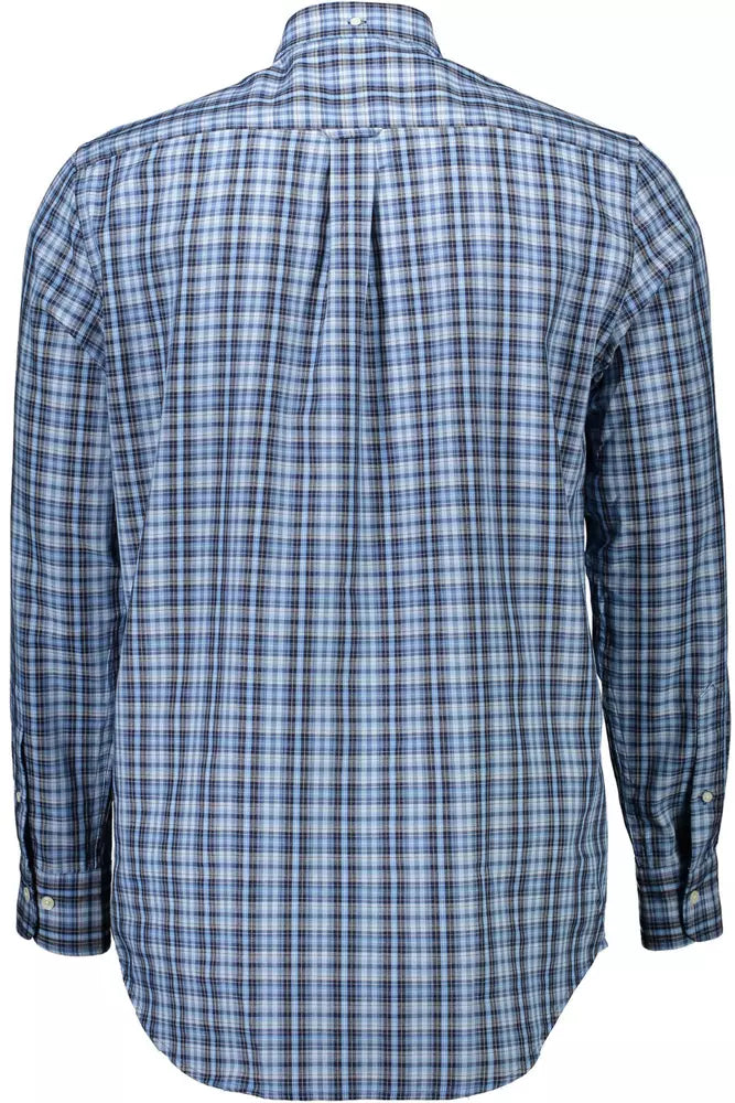 Step into timeless sophistication with this Gant long-sleeved shirt. Crafted for the fashion-forward man, it boasts a suave regular fit, complemented by a sharp button-down collar. The single breast pocket and one-button cuffs add a classic touch, while the signature Gant logo subtly brands the piece. Its blue color is a versatile choice for any stylish wardrobe. Made from a premium blend of cotton and polyester, this shirt promises comfort and durability, proving an impeccable choice for both casual and formal settings.