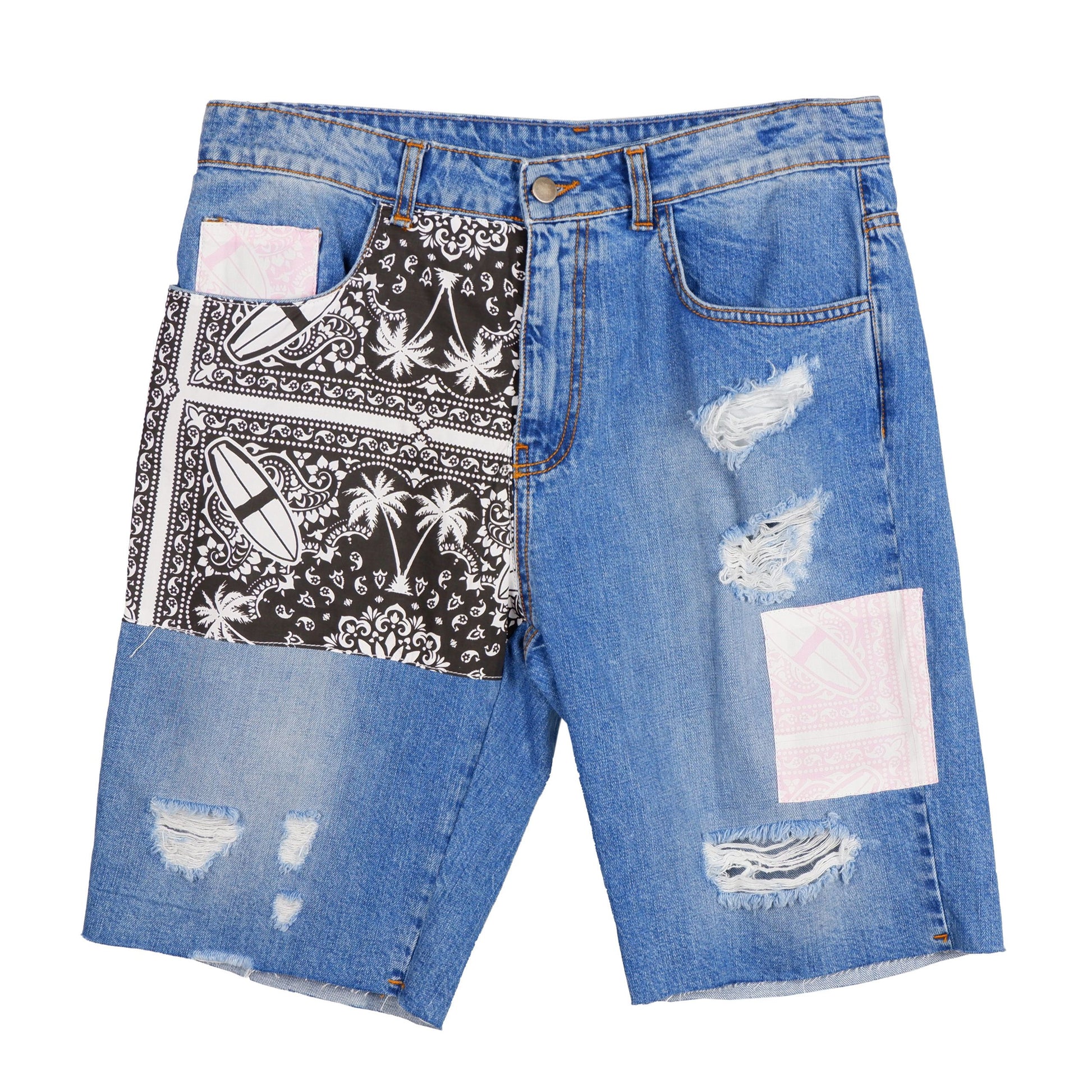 Revamp your casual wardrobe with these thought-provoking Distressed Denim Bermuda Shorts, infusing a bold dose of attitude into your everyday ensembles. Crafted in Italy, these premium shorts showcase artful abstract print applications with deliberate rips and wear for an effortlessly cool, lived-in look. Perfect for those who dare to stand out.