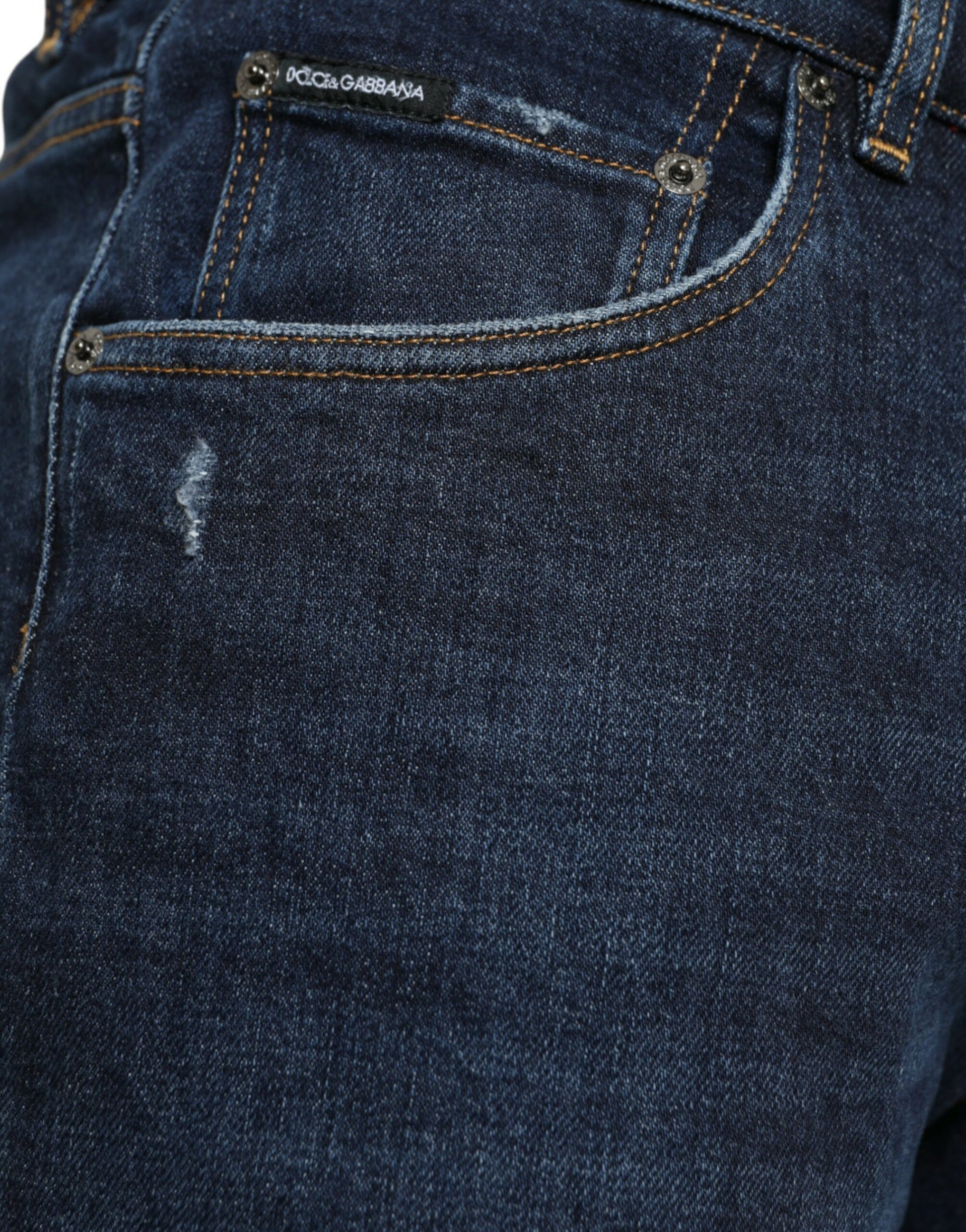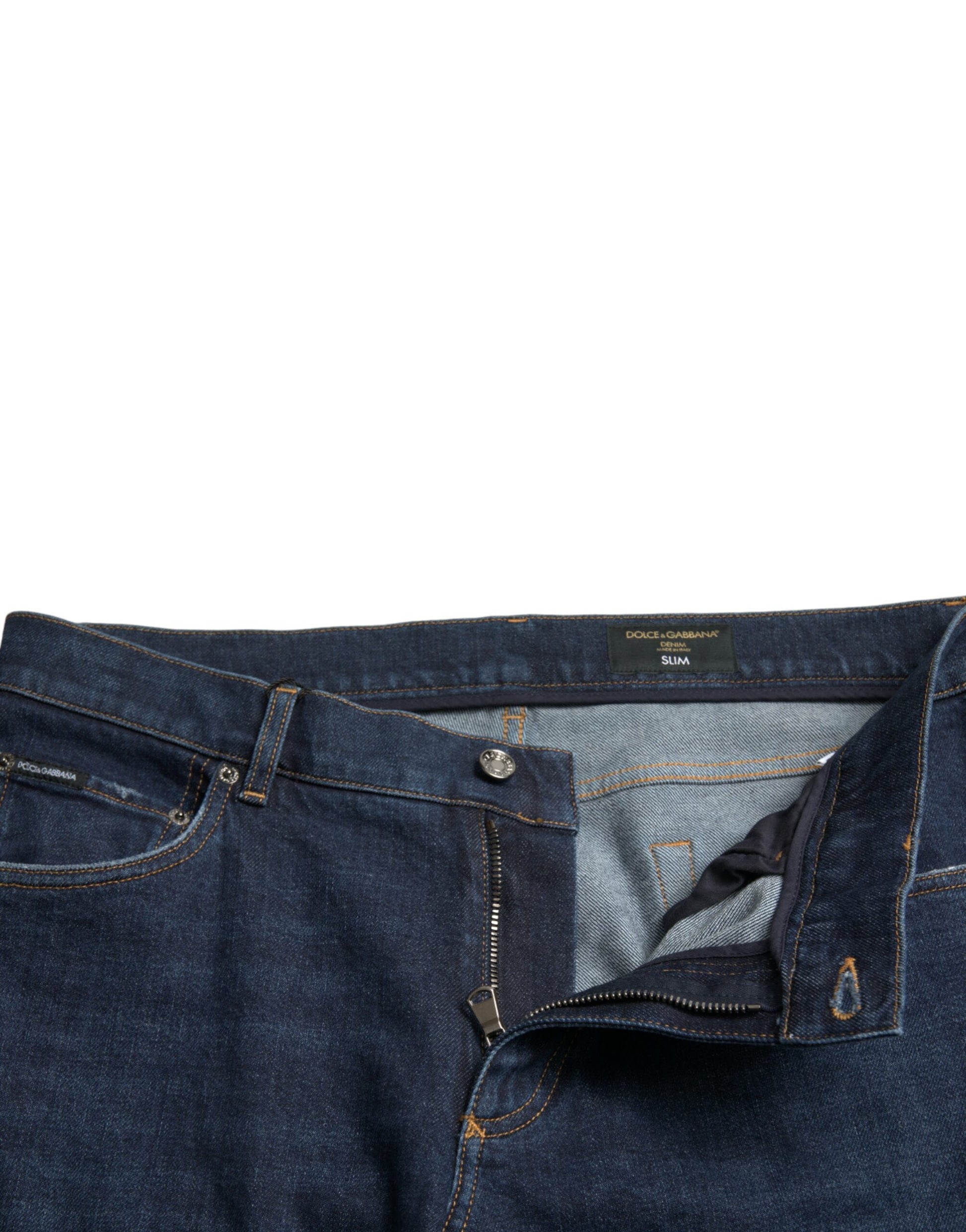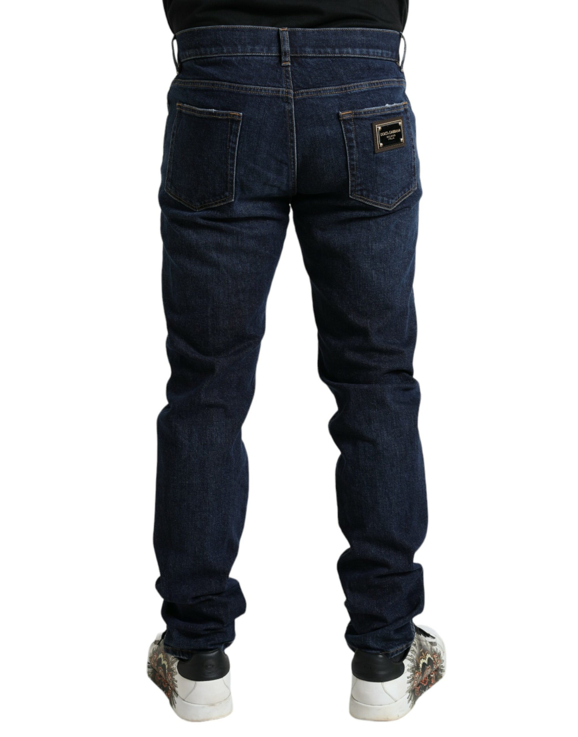 Step into style with these exquisite cotton skinny denim jeans from Dolce & Gabbana. Perfect for adding Italian elegance to your wardrobe, these jeans offer a flattering skinny fit, ensuring both comfort and high fashion. With a classic blue color, they are versatile for any occasion. Completed with the signature logo details, they represent luxury and sophisticated taste.