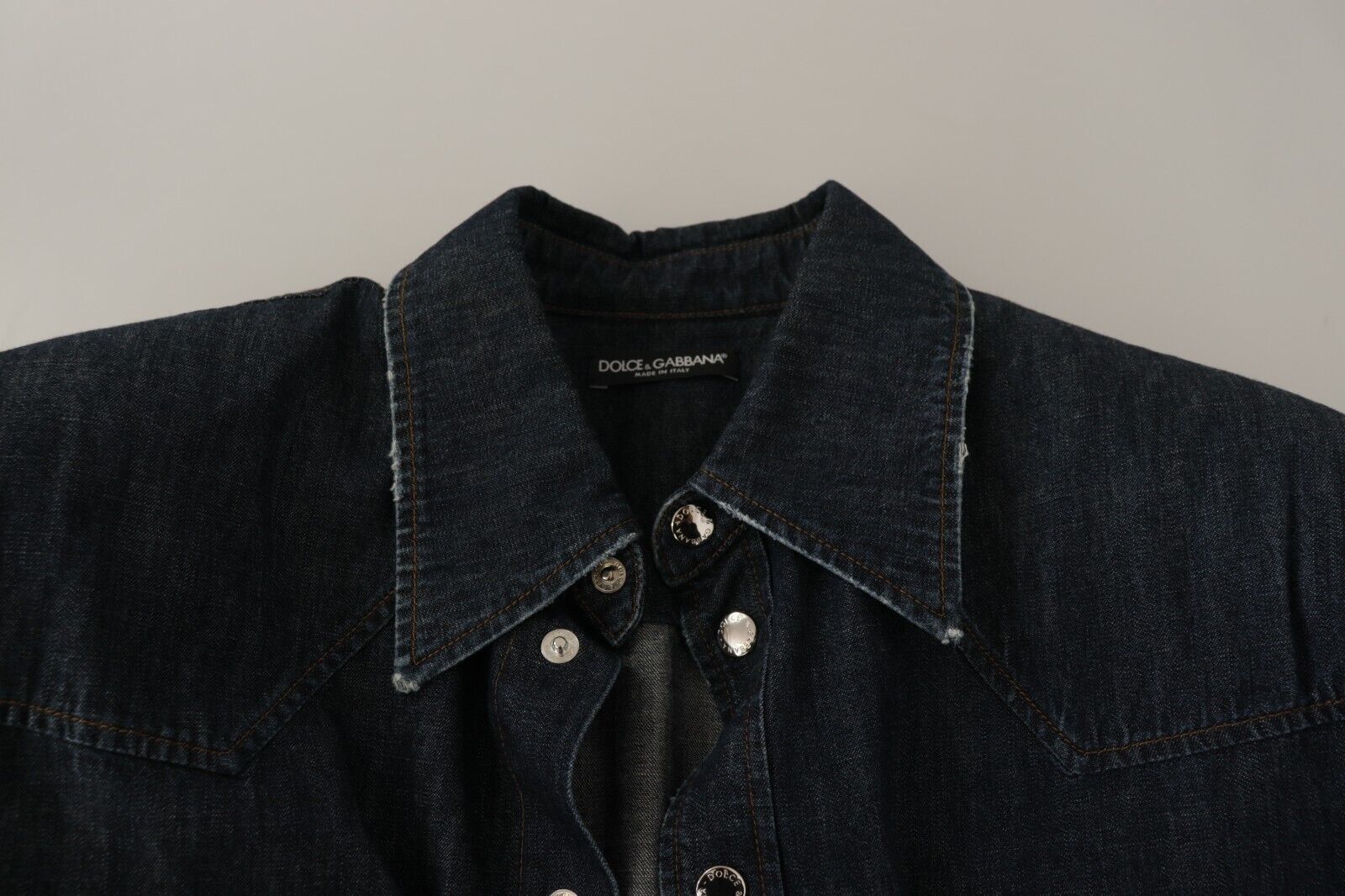 Step out in stunning style with our 100% Authentic, new with tags Dolce & Gabbana dark blue casual shirt. Its slim fit design echoes sophistication, crafted from the finest 100% cotton for unrivaled comfort. Make a statement with this quintessential piece, perfected with a front button closure and exquisite logo details. Proudly made in Italy, this shirt is a testament to timeless elegance and quality craftsmanship.