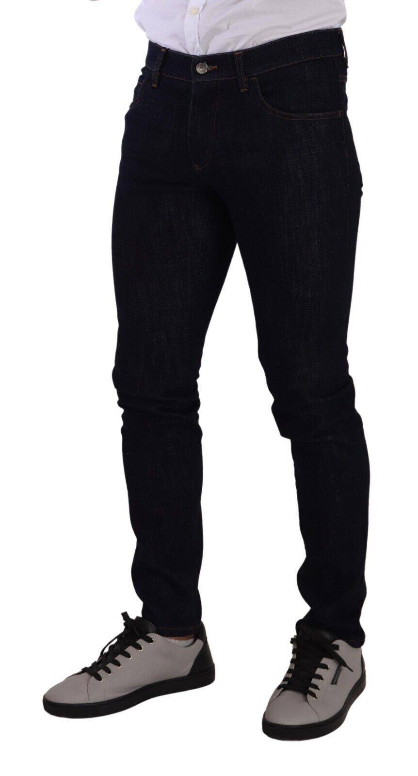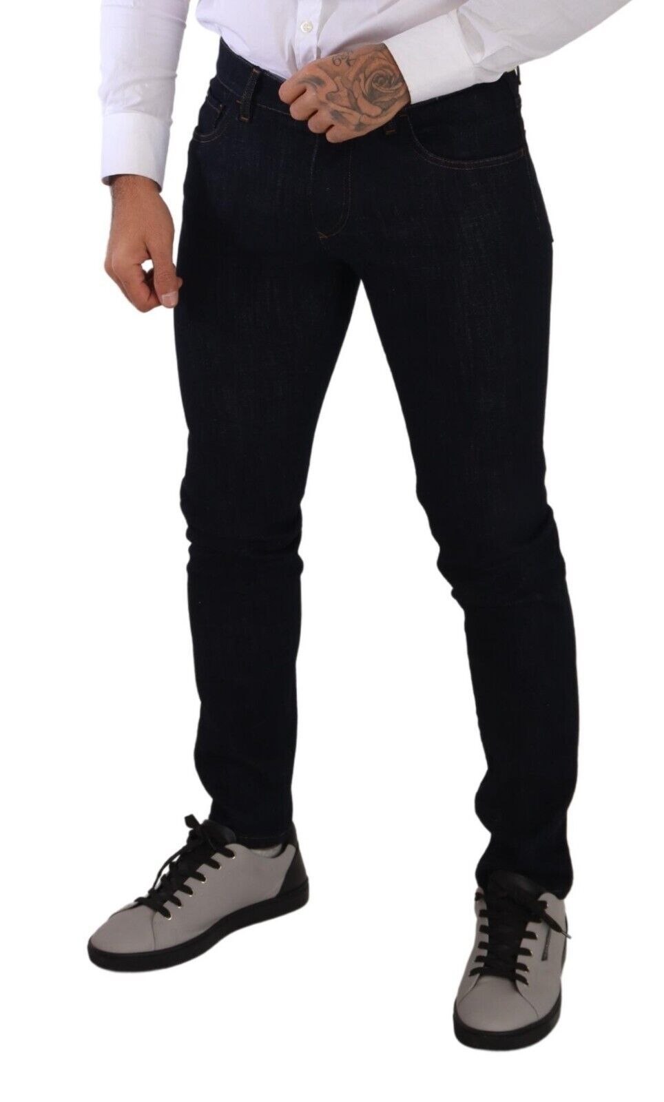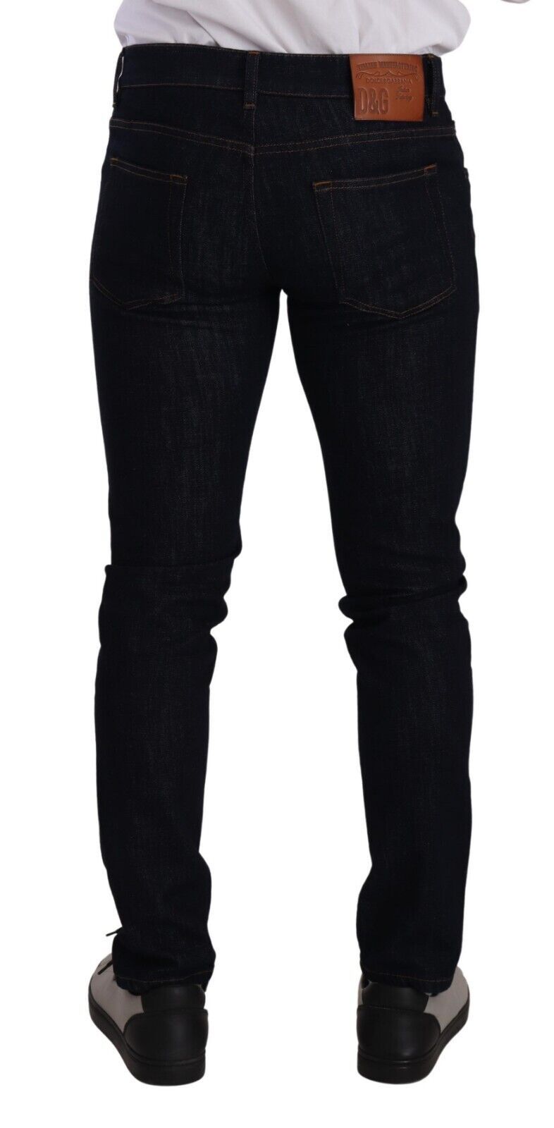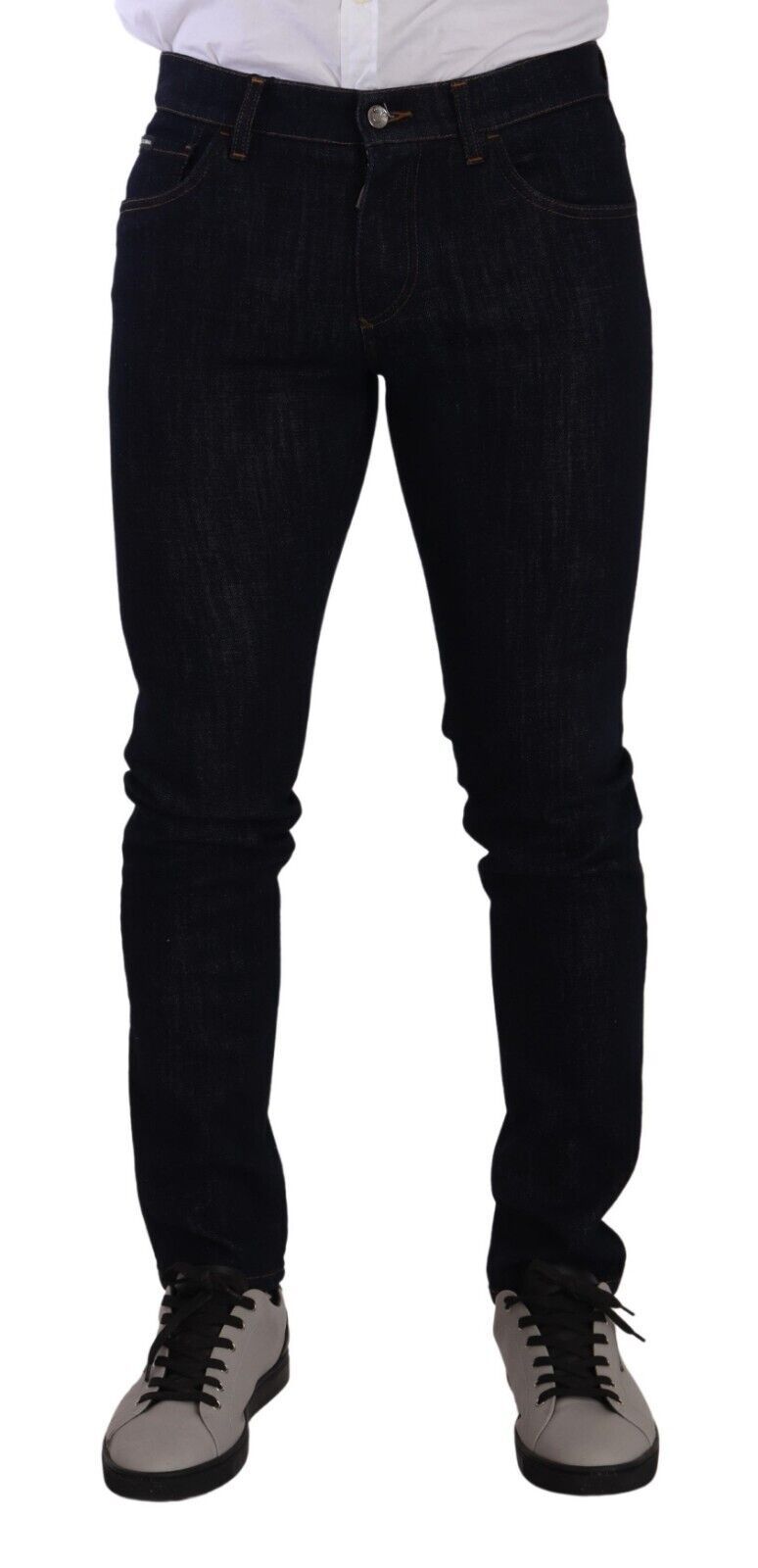 Embark on a journey of style with these exceptional skinny jeans from Dolce & Gabbana. Expertly crafted in Italy and cut to a sleek slim-fit, their dark blue hue offers versatility for day-to-night ensembles, while the stretch cotton blend ensures both comfort and durability. Perfectly embodying casual sophistication, these jeans come new with tags and feature the iconic logo details, adding an unmistakable touch of luxury to your wardrobe.