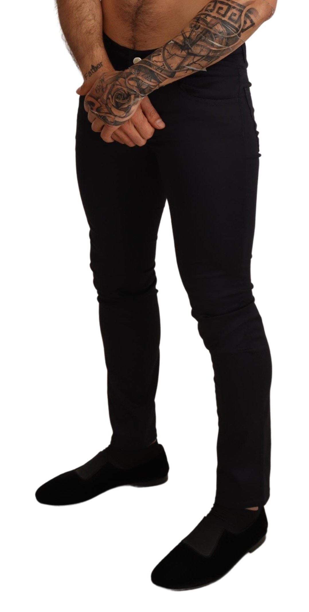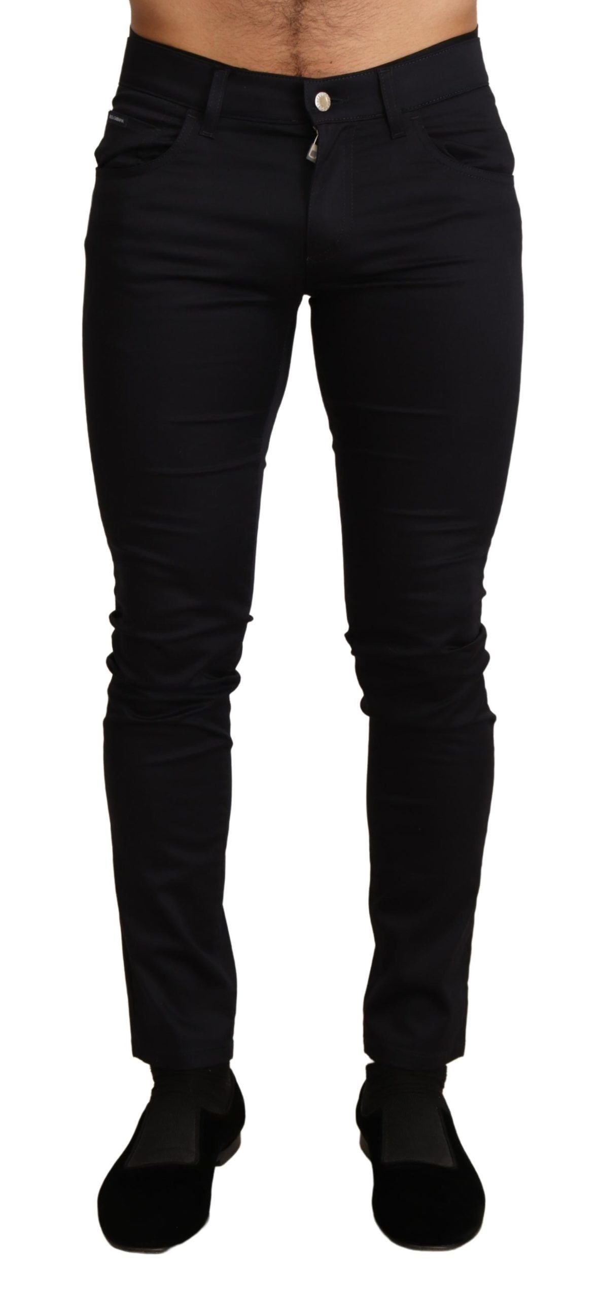 Refine your denim collection with a touch of Italian elegance. These exquisite dark blue jeans from Dolce & Gabbana are brand new with tags, ensuring a fresh addition to your wardrobe. Crafted from a comfortable blend of 96% cotton and 4% elastane, they offer a slim fit that is both stylish and flattering. The design features a traditional five-pocket structure and is secured with a zipper and button closure. A metal logo plaque adorns the back pocket, adding a subtle nod to its prestigious origins. Perfect for those seeking high-quality craftsmanship and exclusive style.