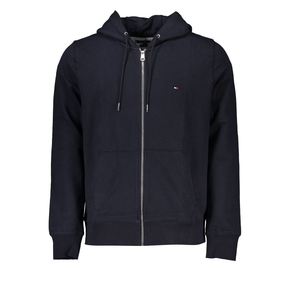 Step up your casualwear with this cozy and stylish hooded sweatshirt by Tommy Hilfiger. Perfect for those brisk days or casual evenings out, this sweatshirt features soft brushed fabric for warmth, paired with the convenience of a full zip and two central pockets. Signature Tommy Hilfiger embroidery adds an exclusive touch to the classic blue hue, making it a must-have for your wardrobe.
