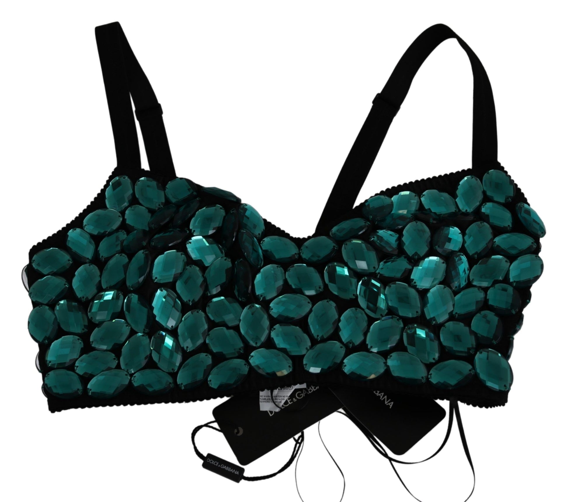 Step into the spotlight with this exquisite Dolce & Gabbana Crystal-embellished Crop Top, brand new with tags. Crafted for the fashion connoisseur, this bustier top dazzles with its intricate blue crystal adornments, set against a sophisticated black backdrop, offering an alluring blend of edge and elegance that is sure to make a statement. Made in Italy, it’s a testament to luxury and craftsmanship.