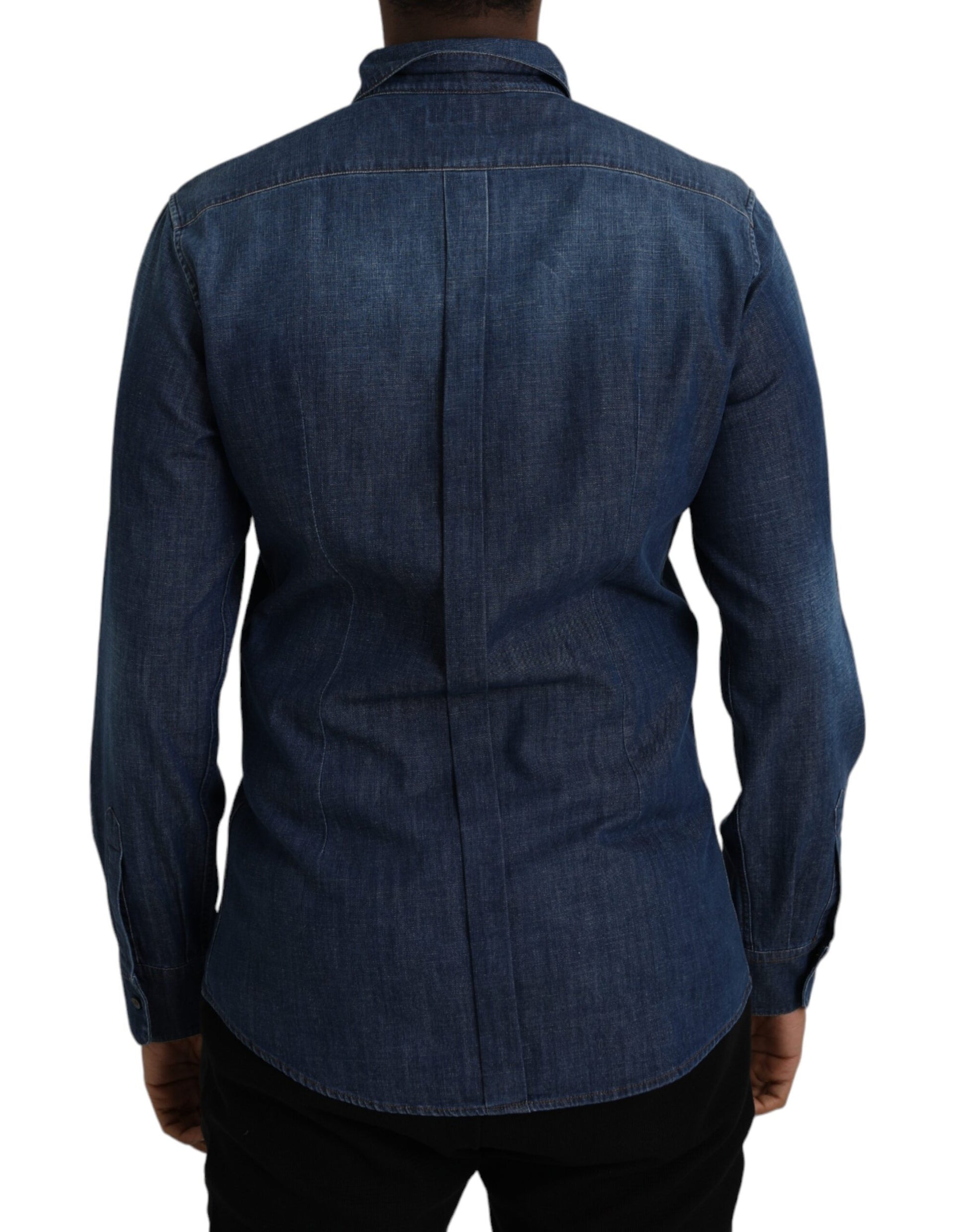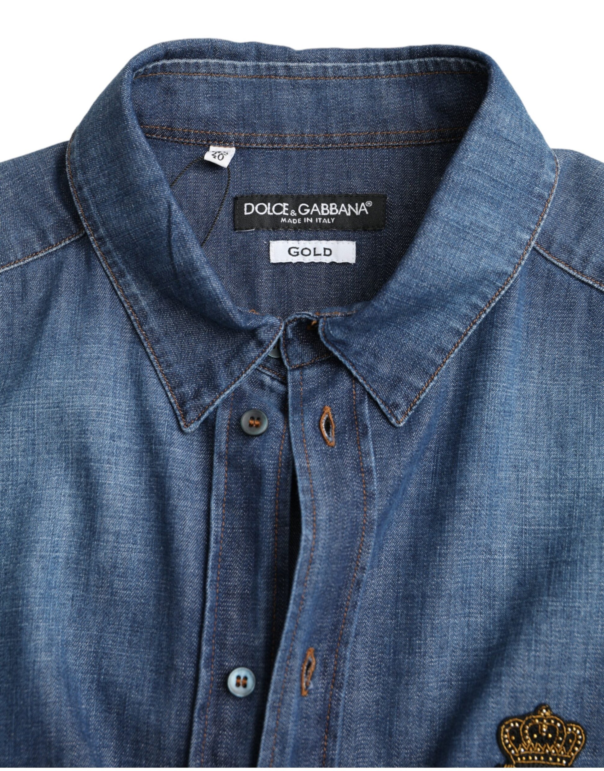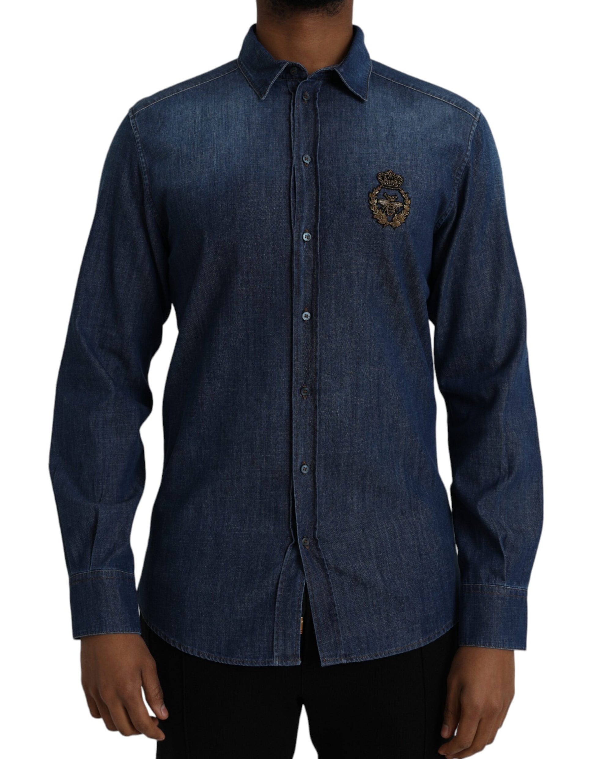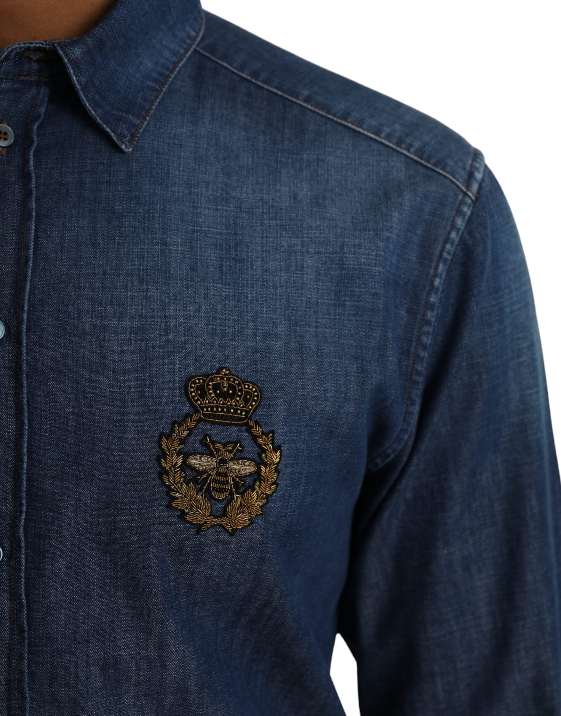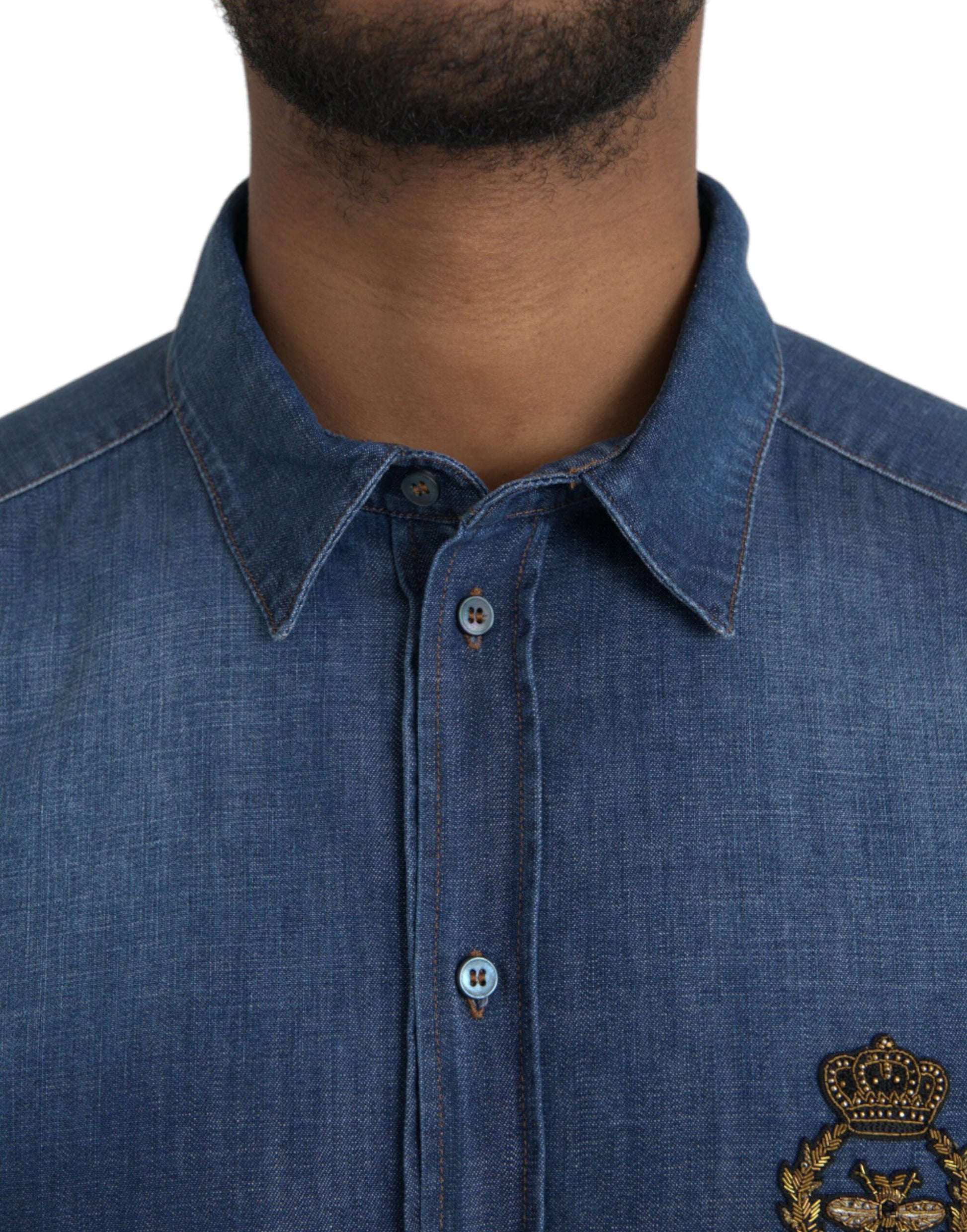 Absolutely stunning, 100% Authentic, brand new with tags Dolce & Gabbana casual denim shirt with crown bee embroidery. The model has a classic collared neck, long sleeves and a button down closure.