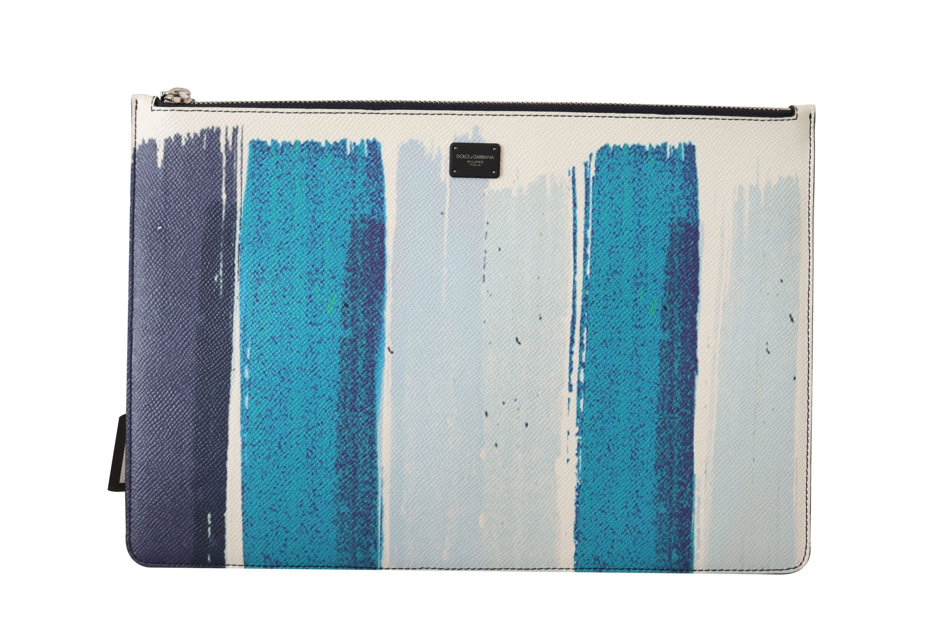 Exude sophistication with this elegant, 100% Authentic Dolce & Gabbana document bag. Perfectly designed for those who appreciate luxury and style, this stunning bag sports a fresh white and blue striped design crafted from the finest leather. Whether for business or pleasure, carry your essentials in this sleek accessory that combines functionality with high fashion. Boasting a zipper closure to secure your items and adorned with the iconic logo, this Italian-made piece is a testament to exemplary craftsmanship and timeless appeal.