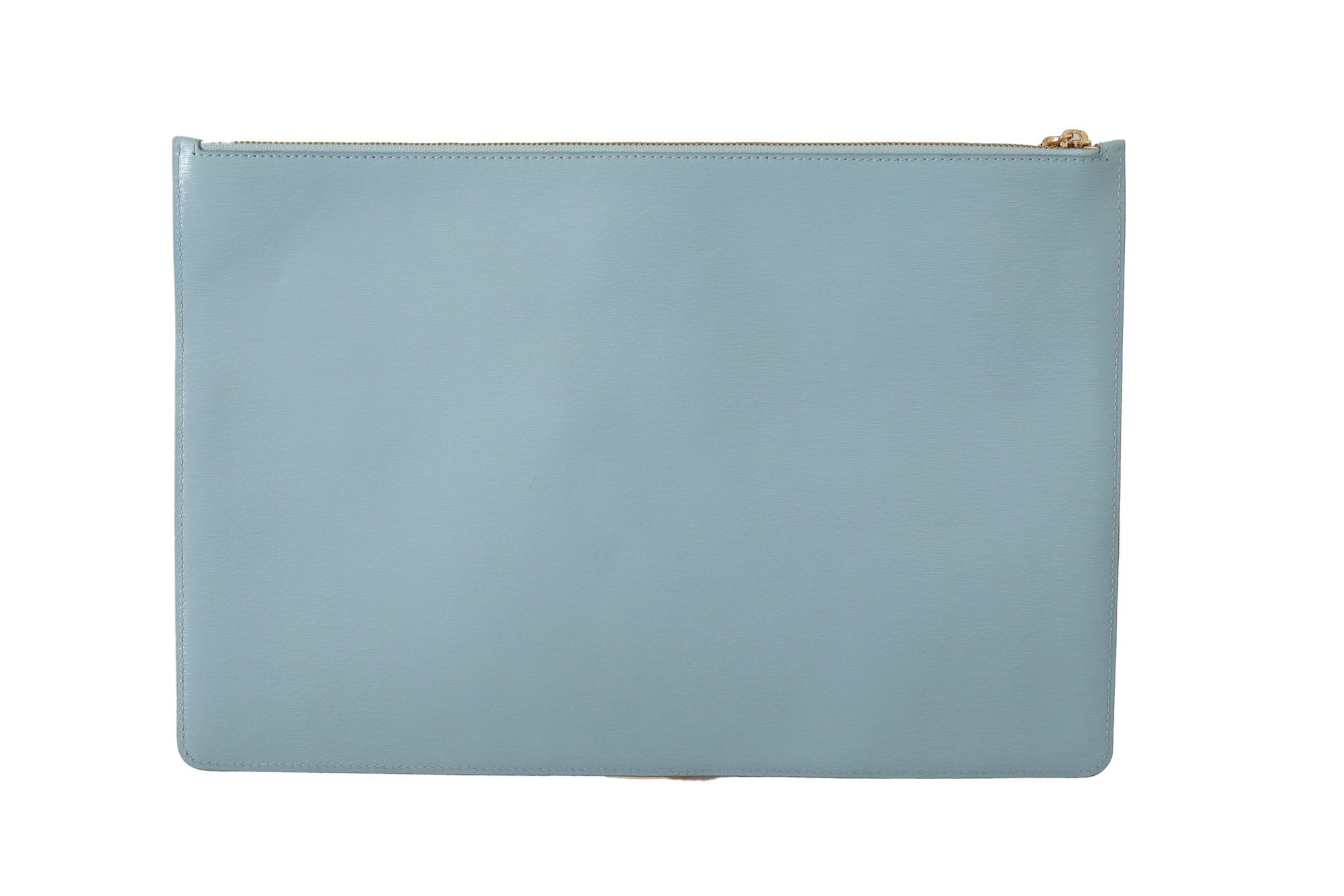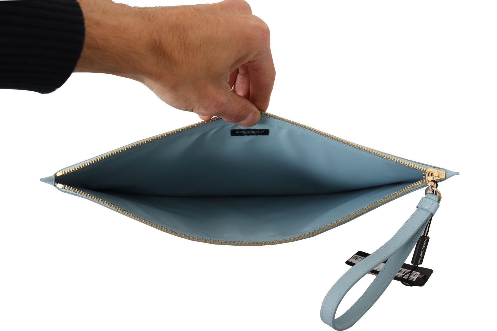 Indulge in the epitome of luxury with this stunning clutch pouch from the esteemed house of Dolce & Gabbana. This exquisite accessory, brand new with tags and box, is a testament to high-end fashion and craftsmanship. The perfect addition to your sophisticated wardrobe, this clutch features a sleek blue hue complemented by eye-catching gold metal hardware. Secure your belongings with its refined zipper closure and enjoy the convenience and style this piece brings to any ensemble. Crafted in Italy, it not only embodies the elegance but also the quality associated with such a revered brand.