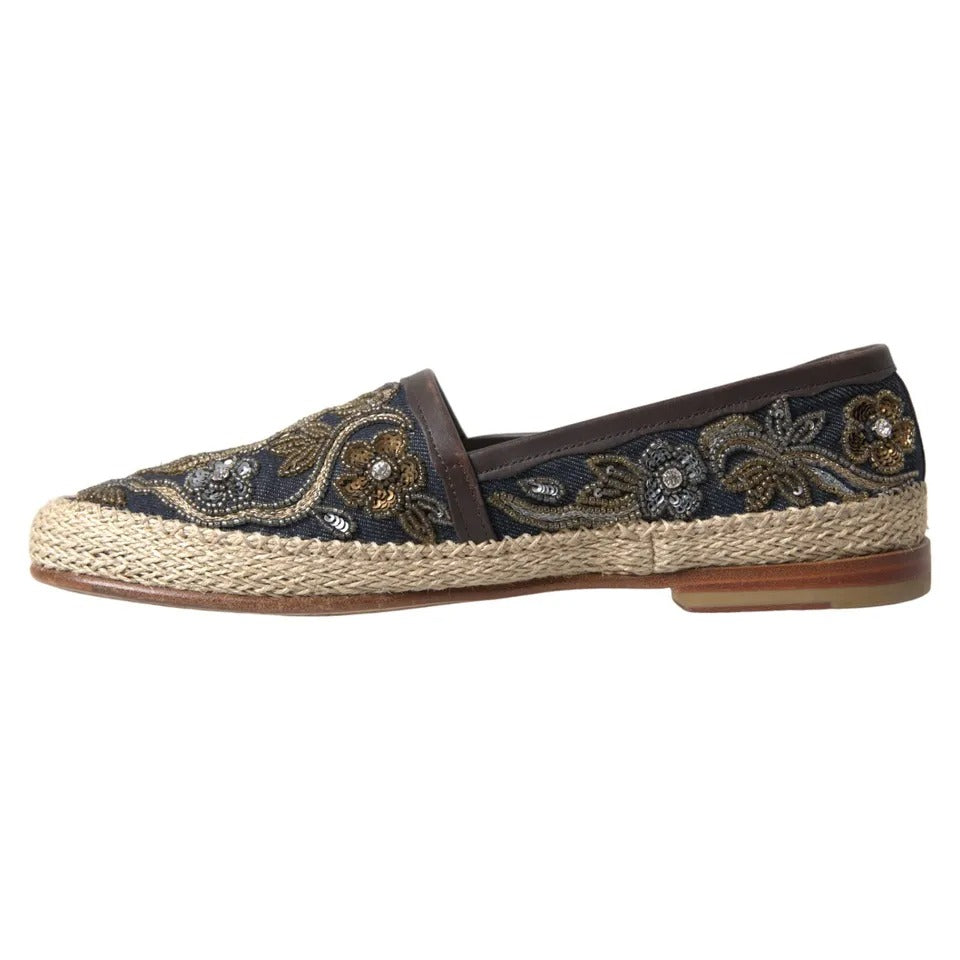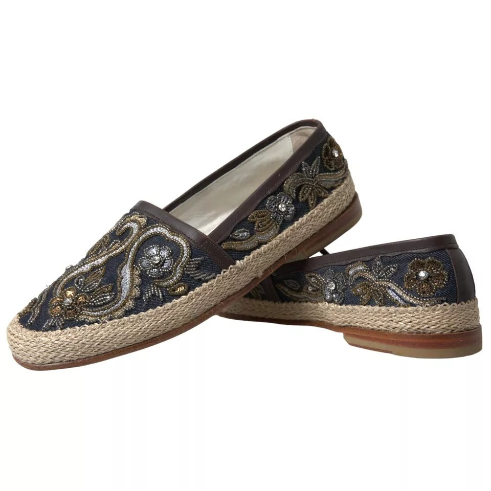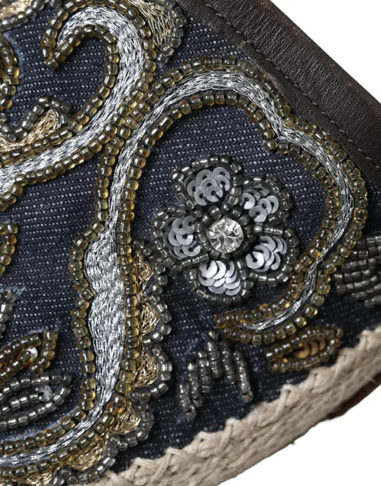 Gorgeous brand new with tags, 100% Authentic Dolce & Gabbana crystals and metal pieces / seam embroidered espadrilles PIANOSA made of denim and leather.