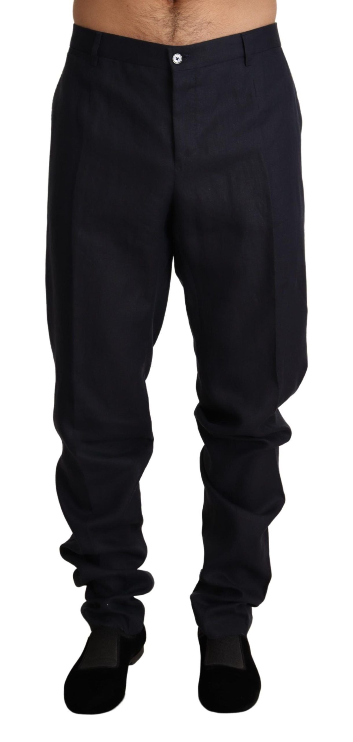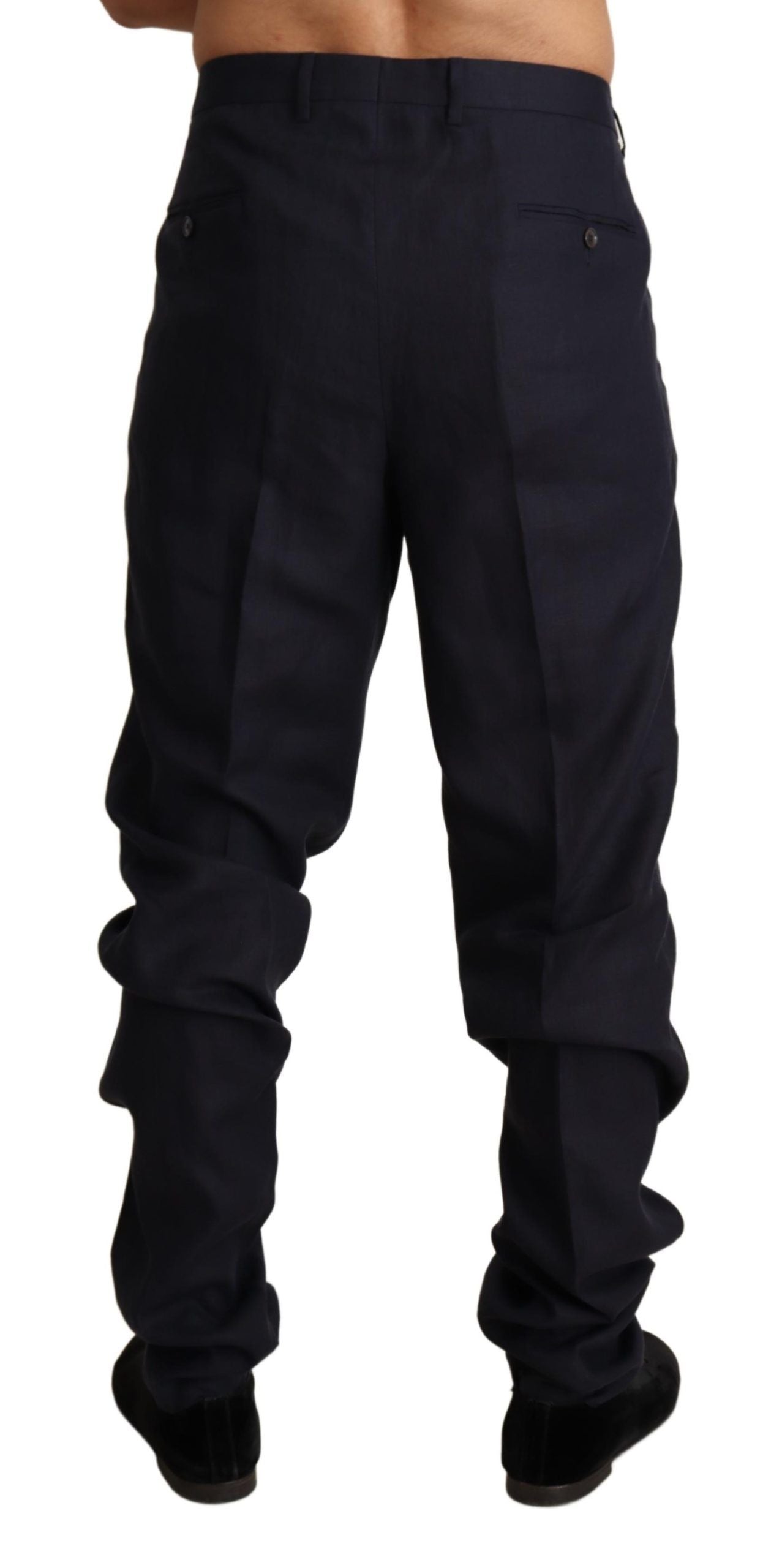Step into sophistication with these stunning Dolce & Gabbana dress pants. Showcasing impeccable Italian craftsmanship, these trousers are perfect for formal occasions, offering a comfortable regular fit and a sleek blue hue. A traditional zip and button closure combine with practical side slash pockets and belt loops for a classic look. Lined with a luxurious silk-viscose blend, these trousers promise both style and comfort.