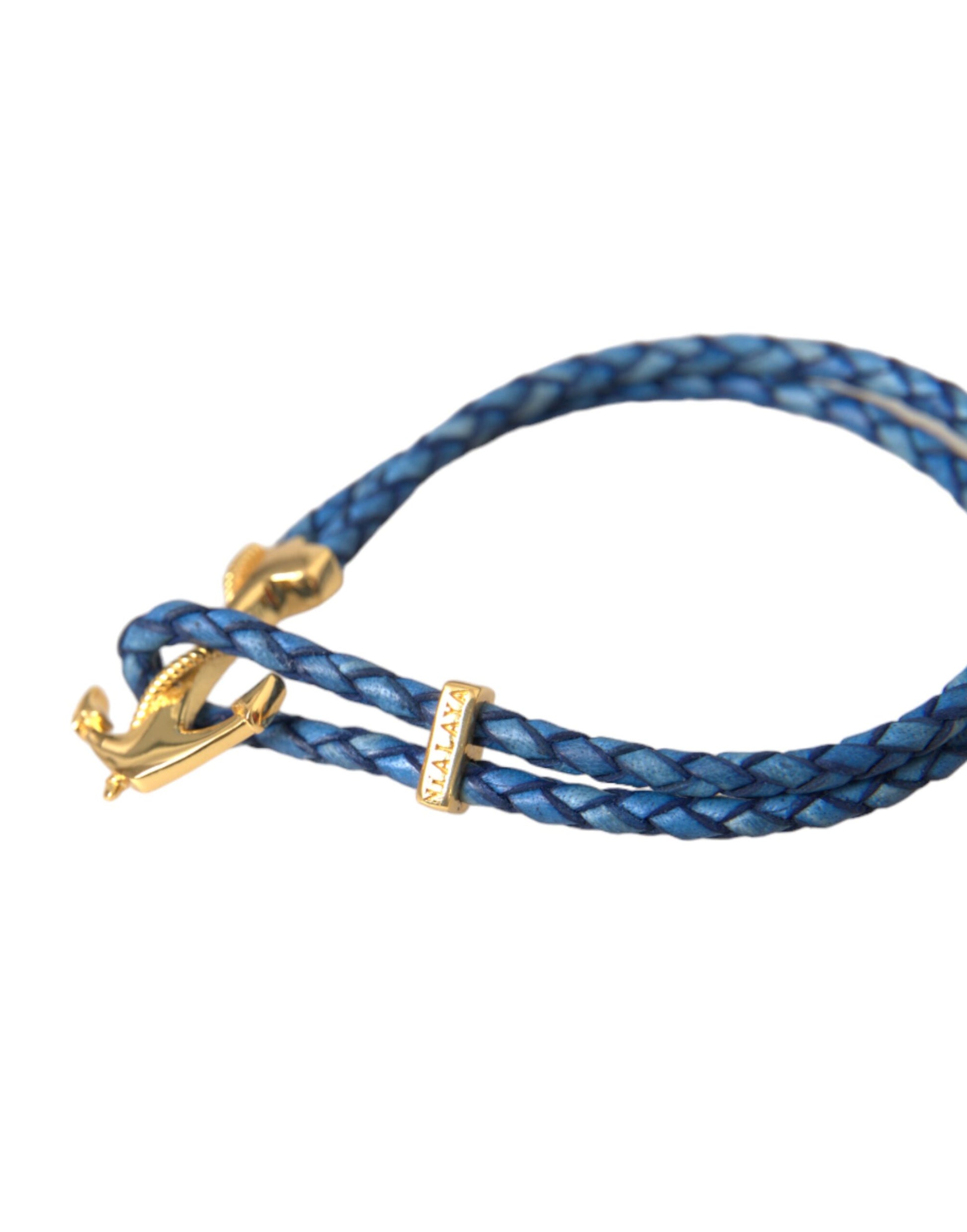 Blue Gold Anchor 925 Silver Charm Bracelet Mens