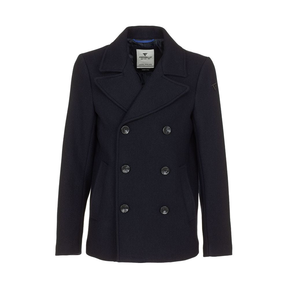 Step out in style with this refined Fred Mello men’s short coat, perfect for elevating your outerwear collection. This Italian-made coat features a sophisticated double-breasted three-button closure and a clean, structured design. Boasting an inside breast pocket for your essentials, and open side pockets for added convenience, this coat melds functionality with fashion effortlessly.