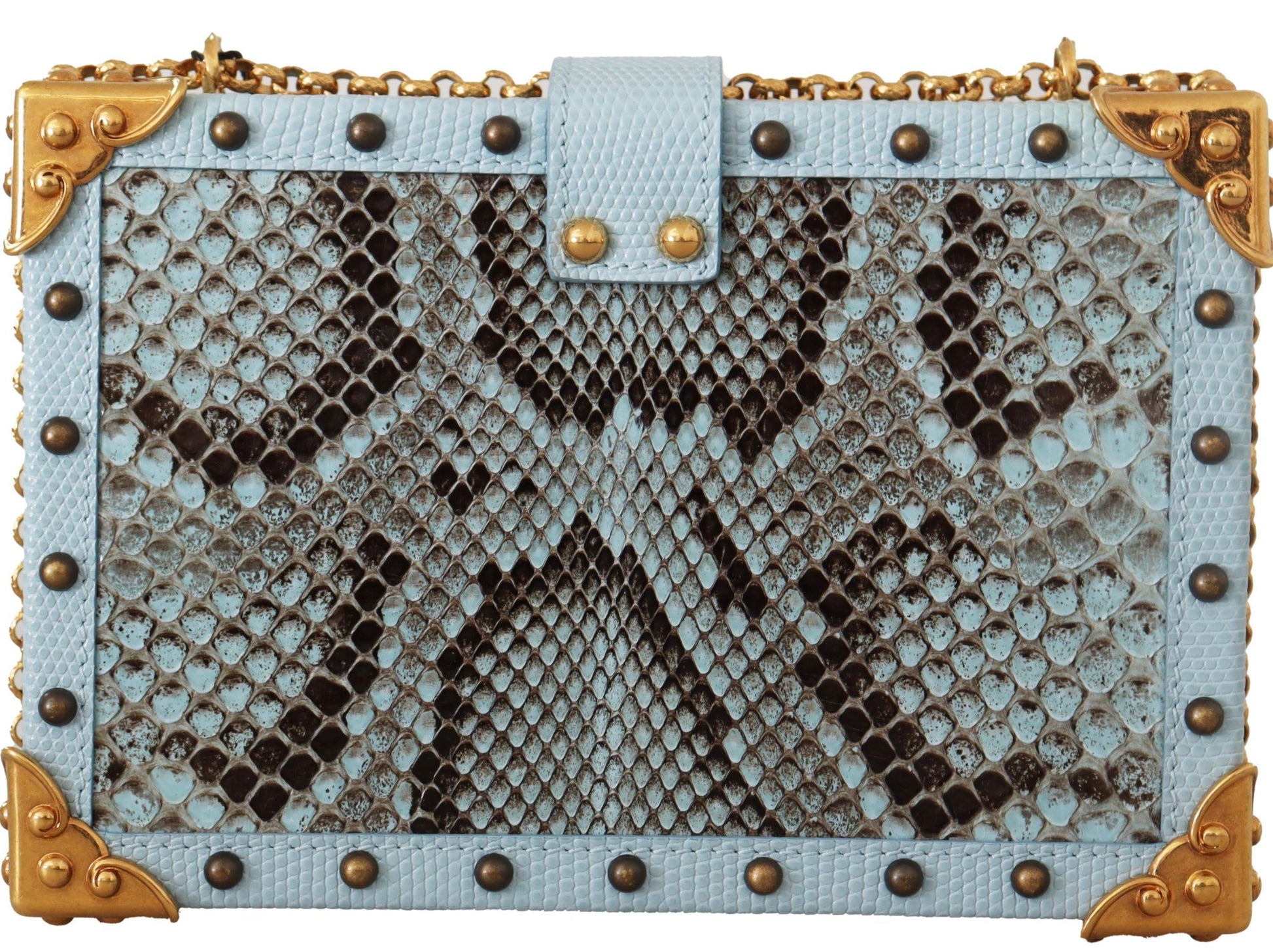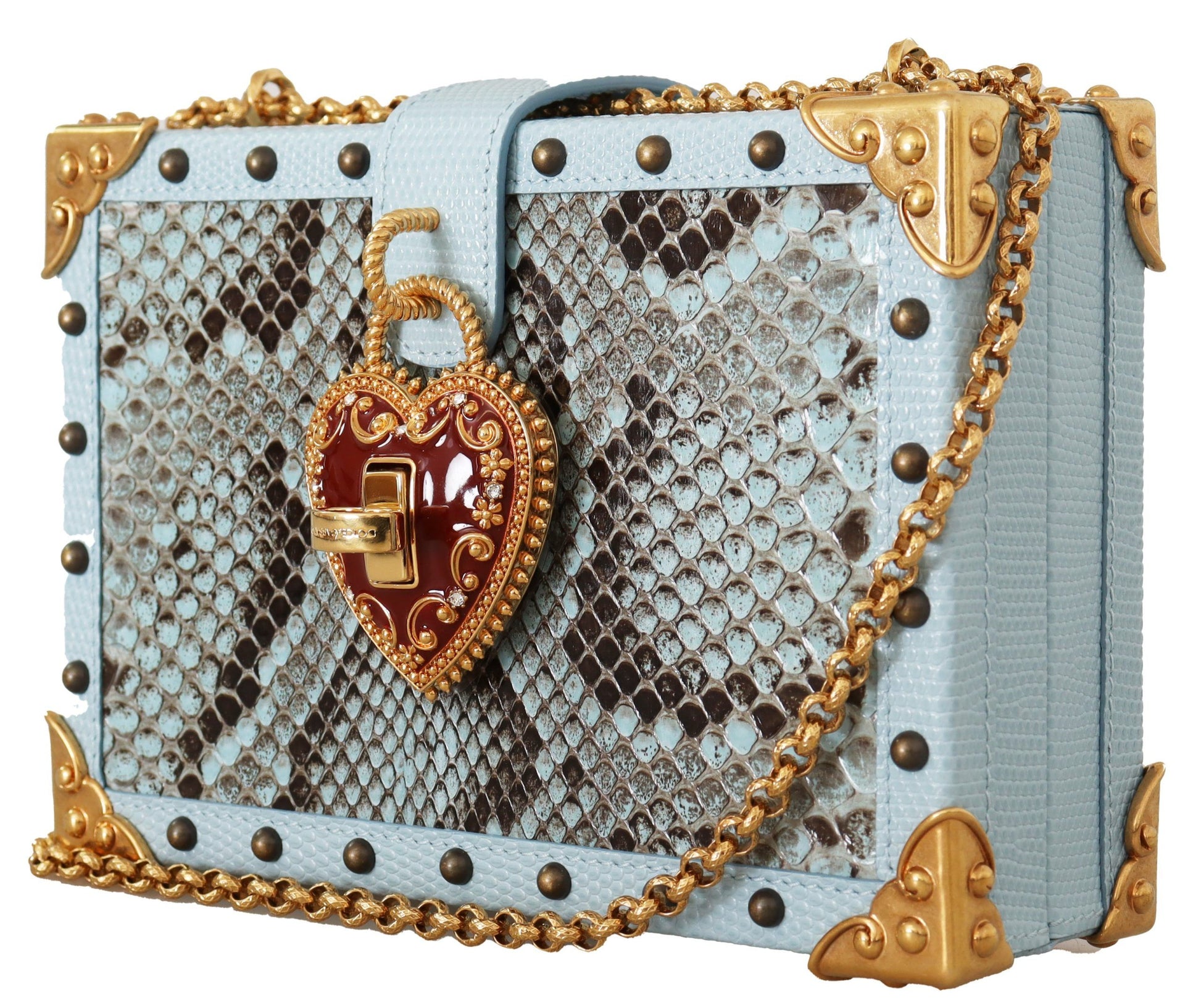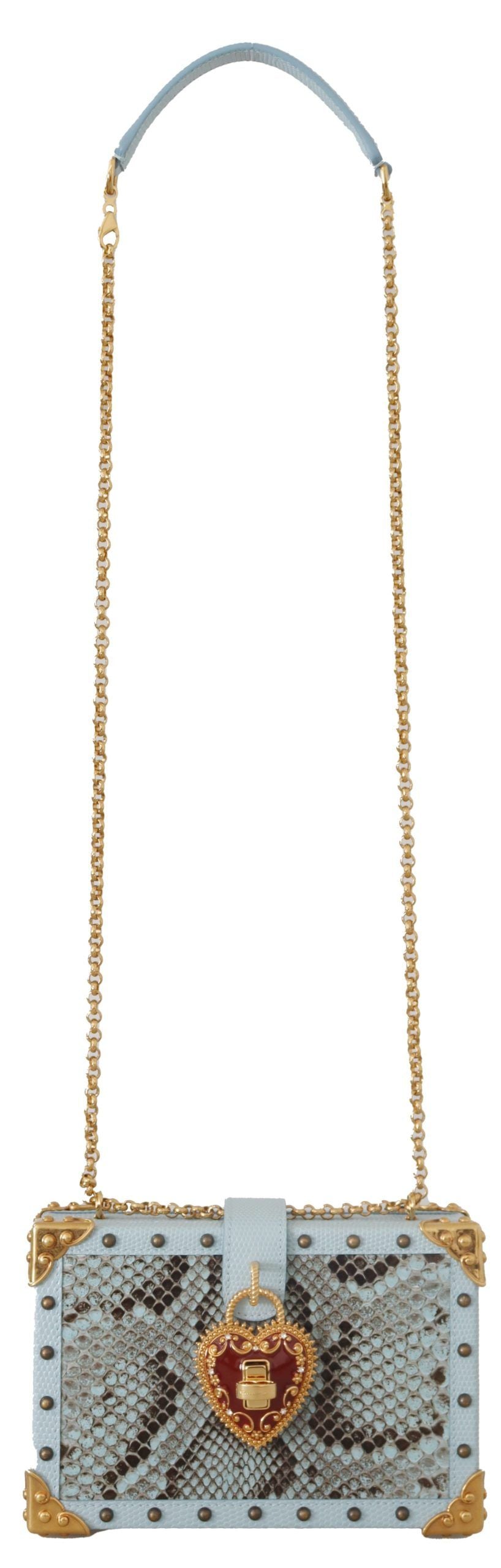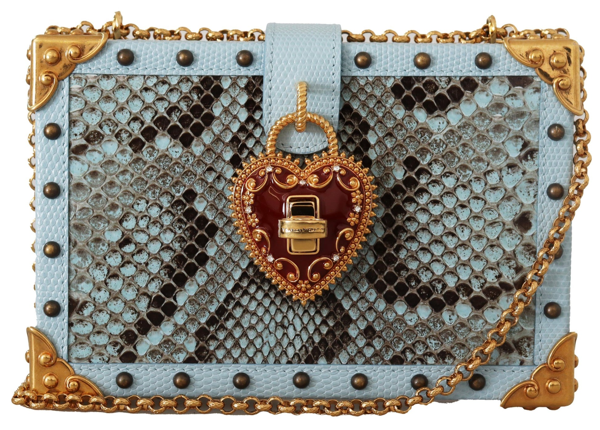Indulge in the luxurious elegance of Dolce & Gabbana with this exquisite shoulder clutch bag, perfect for the woman who cherishes both style and quality. Crafted from a sumptuous blend of leather and Python Moluro, this ‘MY HEART’ box bag features a rich navy blue hue, complemented by golden metal accents. The interior is lined with navy blue leather, ensuring your essentials are held in a soft embrace. Secure your treasures with the chic heart twist lock closure, and flaunt this Italian masterpiece with style.