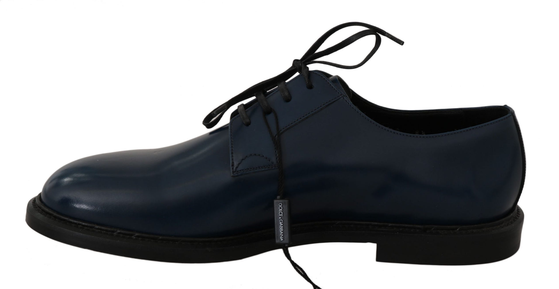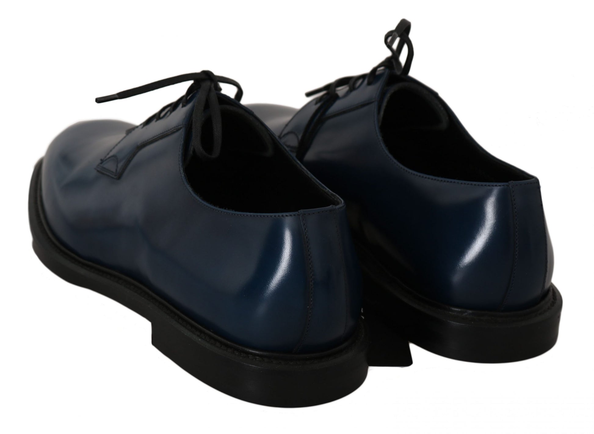 Step into sophistication with these impeccable Dolce & Gabbana Derby Marsala dress shoes. Meticulously crafted from supple 100% leather in a rich blue hue, these formal shoes are a quintessential piece for any gentleman’s wardrobe. Made in Italy, they reflect the quality and luxury associated with the brand, perfectly complementing tailored suiting or elevating a smart-casual ensemble. The rubber sole ensures durability and comfort, while the subtle logo details add an understated touch of designer appeal.
