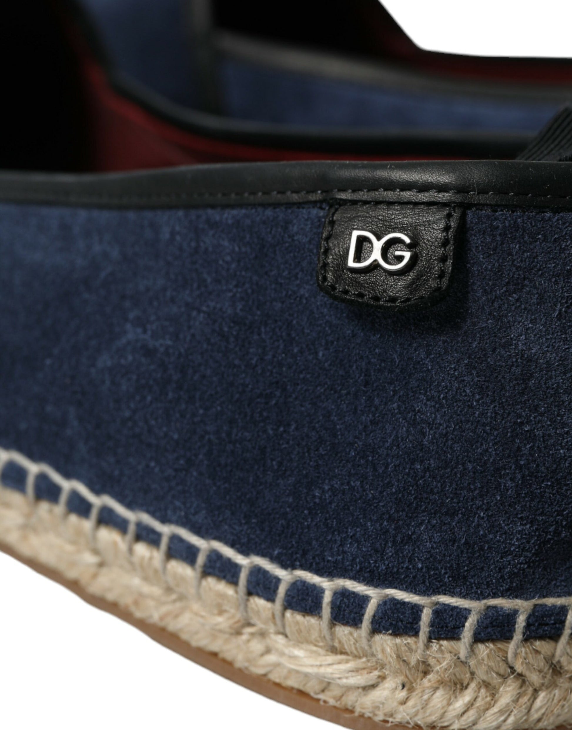 Step into luxury with these exquisite Dolce & Gabbana suede leather espadrilles. Brand new and tagged, they are a true testament to superior craftsmanship. Made in Italy, these shoes exude elegance, with their rich navy blue color and refined rubber sole complete with logo details. Perfect for those who appreciate high-quality and style.