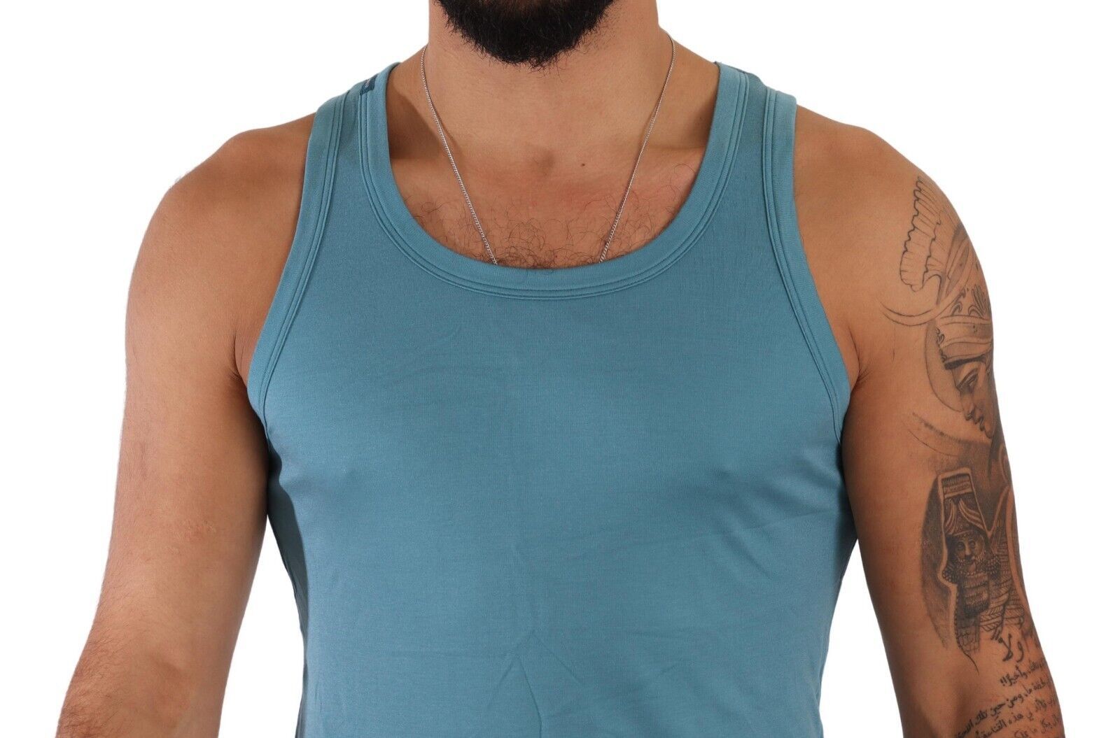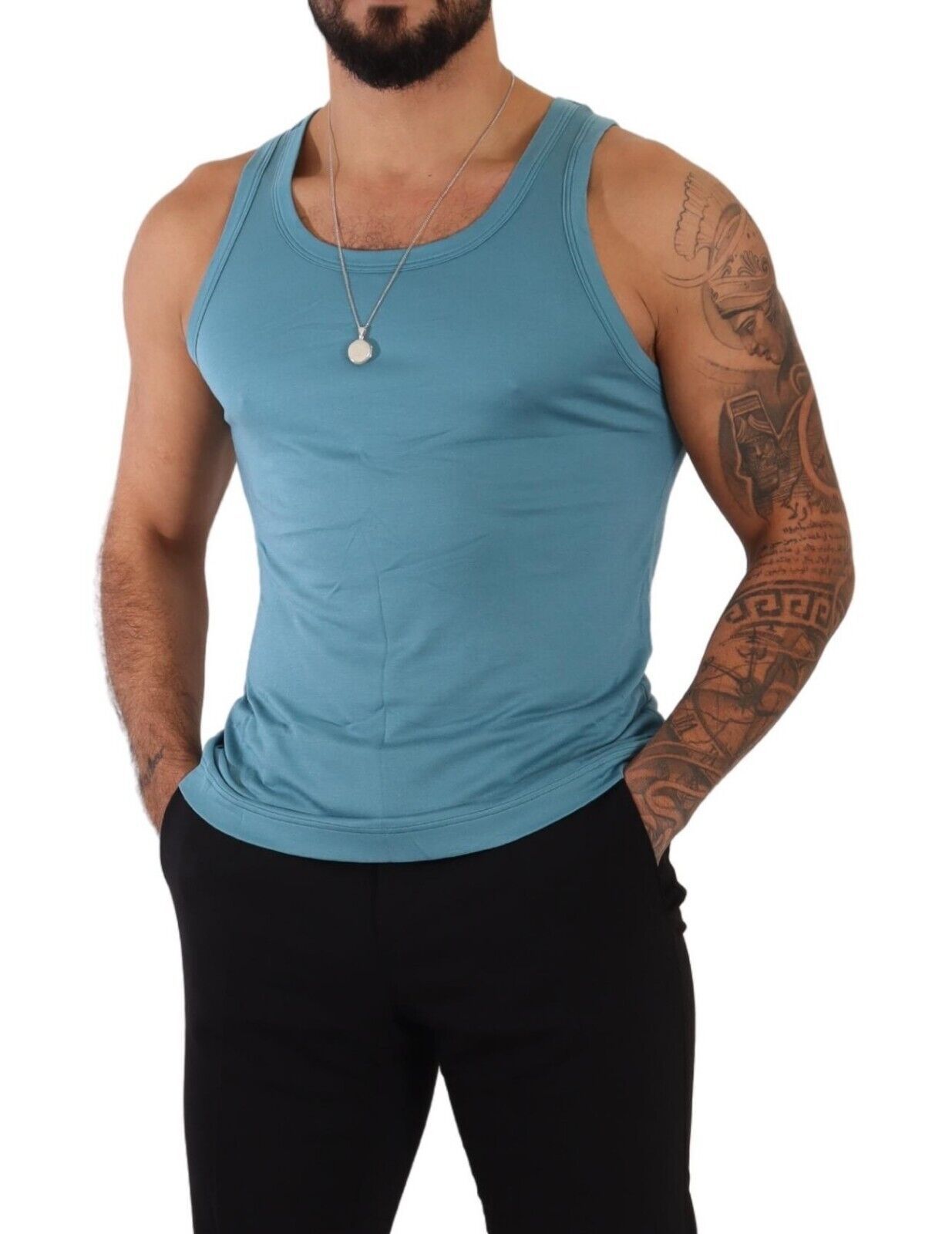 Step up your undergarment game with this luxurious and Authentic tank top by Dolce & Gabbana. Featuring a sleek round neck design, this light blue top is crafted from a sumptuously soft blend of modal and silk, ensuring a comfortable fit and a touch of elegance for your everyday wear. Made with the finest craftsmanship in Italy, this piece is not only stylish but also bears the iconic logo details as a testament to its premium quality.
