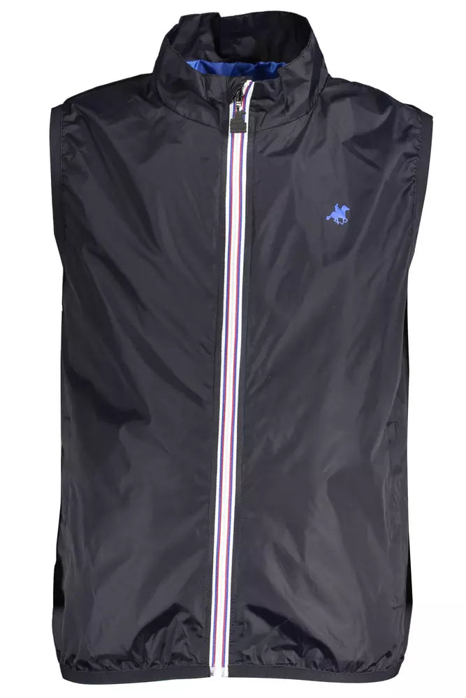 Elevate your wardrobe with the bold and functional “U.S. Grand Polo” sleeveless jacket. A seamless fusion of style and practicality, it’s crafted from 100% nylon, ensuring waterproof resilience. Boasting two convenient outside pockets and one interior pocket for your essentials, the jacket features a sleek blue hue. The iconic U.S. Grand Polo print and logo add a trendy touch to this must-have piece, perfect for the fashion-forward individual who refuses to sacrifice style for comfort.