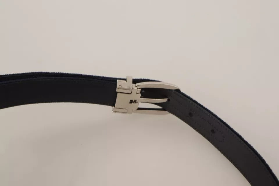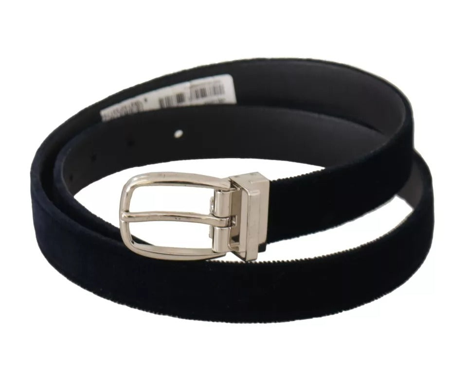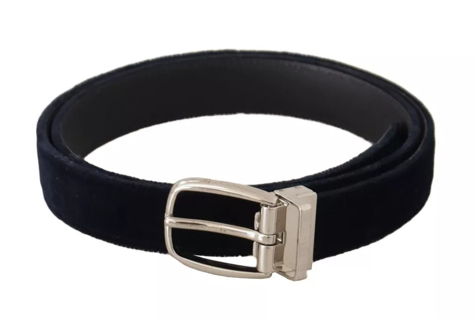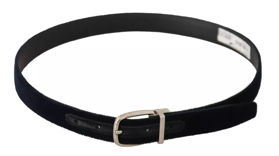Blue Plain Velvet Silver Tone Metal Buckle Belt