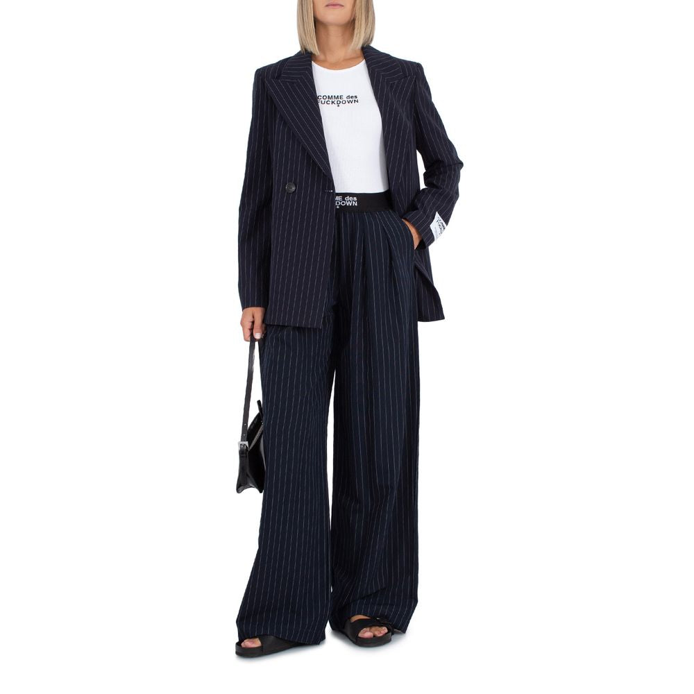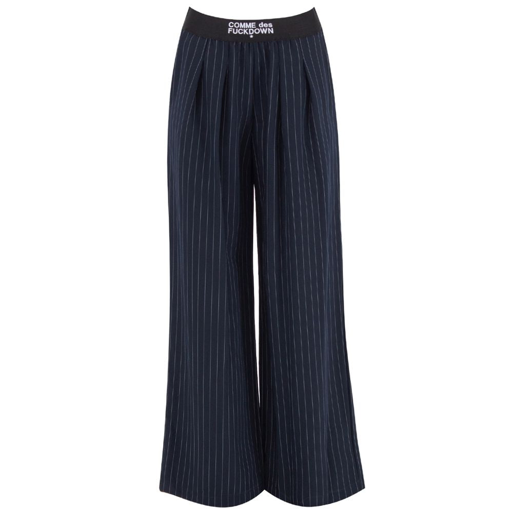 Comme des Fuckdown pinstriped palazzo trousers with logo elastic waistband, two side pockets