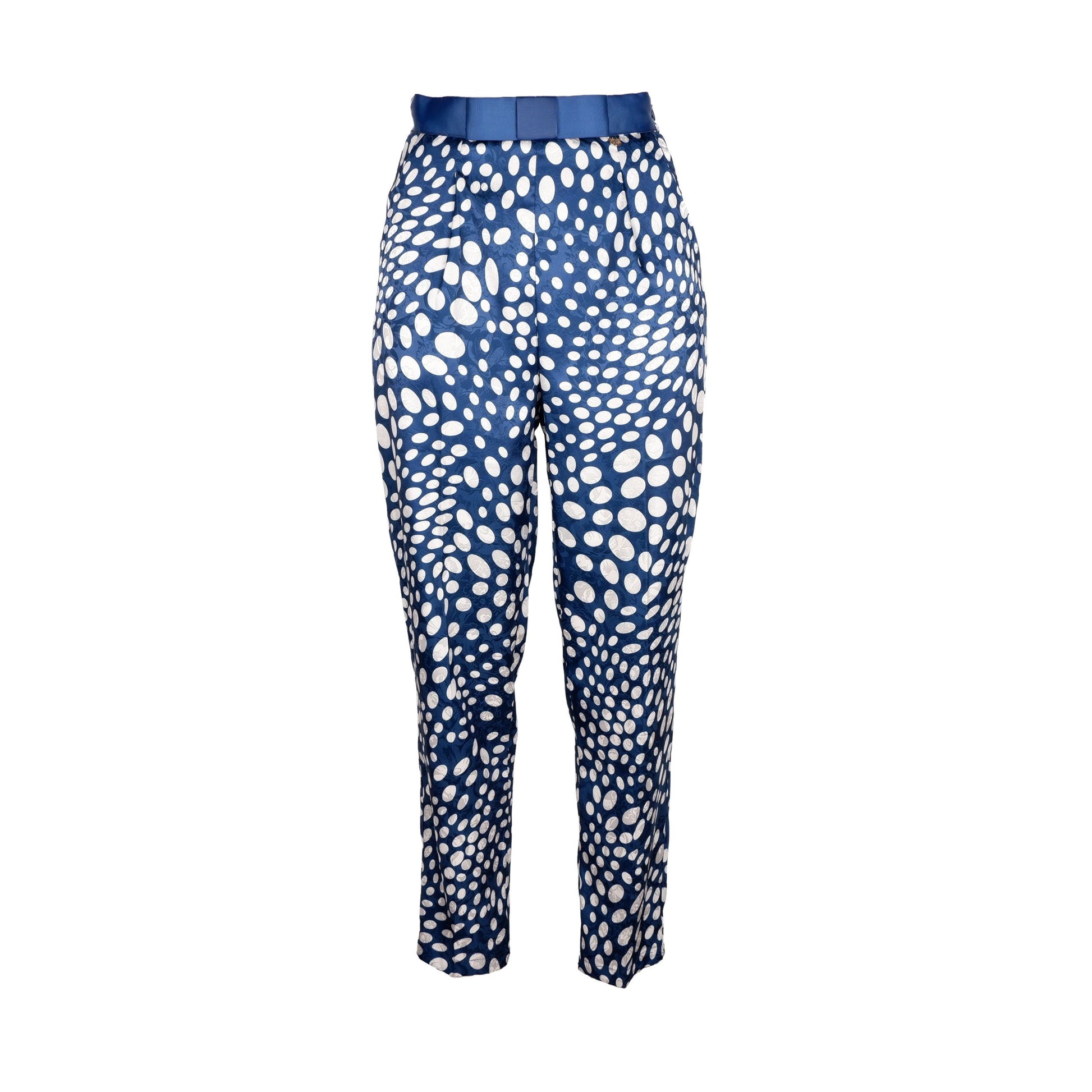 Elevate your wardrobe with the chic allure of Yes Zee’s high-waisted trousers. Perfect for the fashion-forward woman, these pants boast an elegant bow at the waist, creating a silhouette that embodies sophistication. The light and airy polka dot fabric, infused with a touch of stretch, allows for a blend of comfort and high style. Ideal for special occasions, these trousers invite playful accessorizing to match your unique flair.