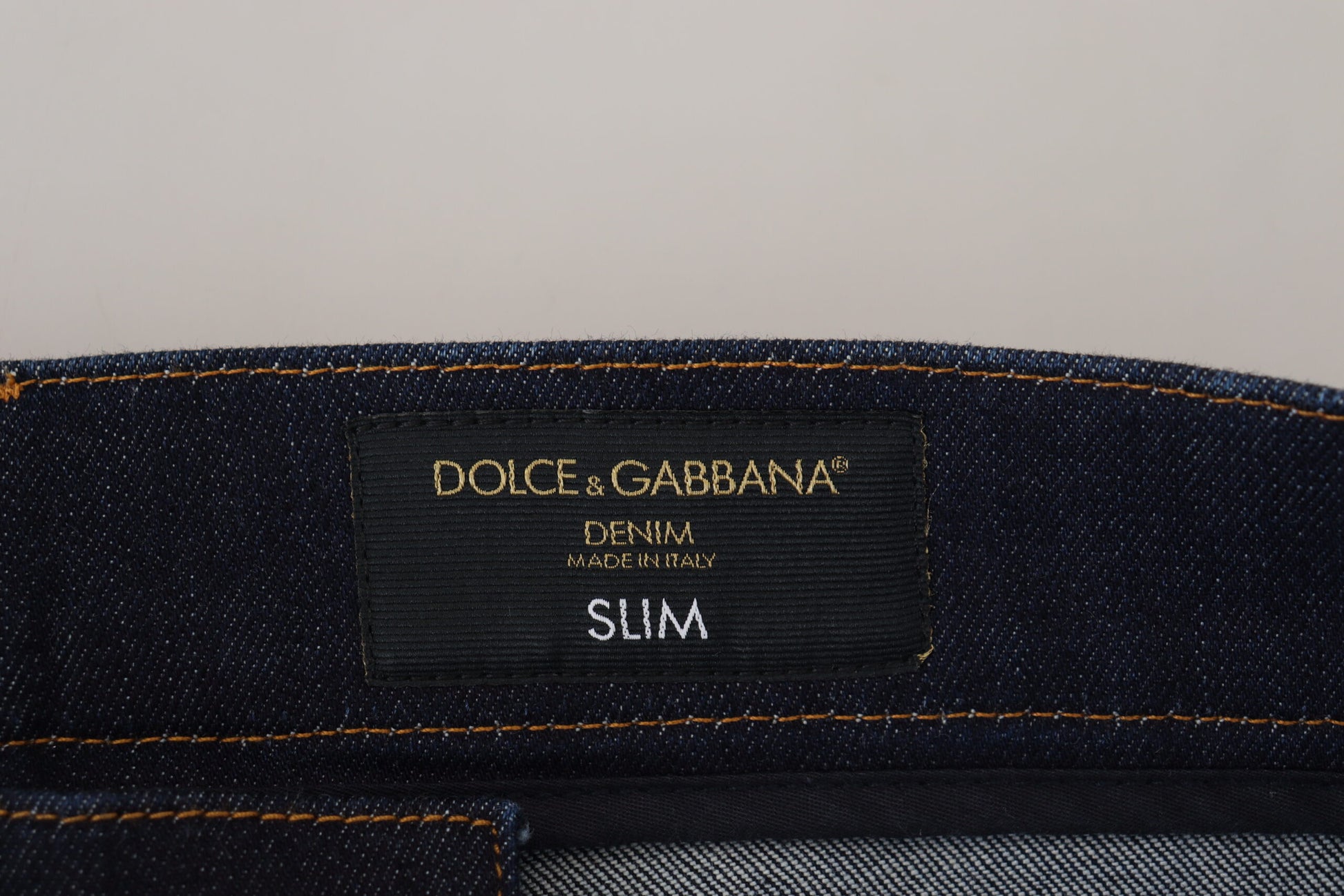 Step into style with our Dolce & Gabbana denim jeans, a fresh addition to your high-end wardrobe. These skinny jeans embody upscale fashion, designed for the discerning individual. Crafted from premium cotton blend for a snug fit, they feature a classic blue hue that’s versatile for any occasion. Alongside luxurious comfort, these jeans boast the iconic Dolce & Gabbana logo detailing, ensuring that your fashion status is never questioned.