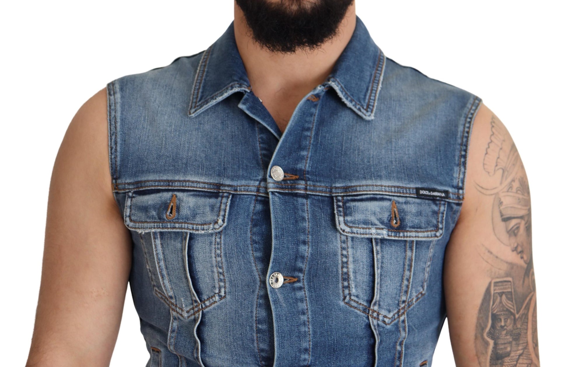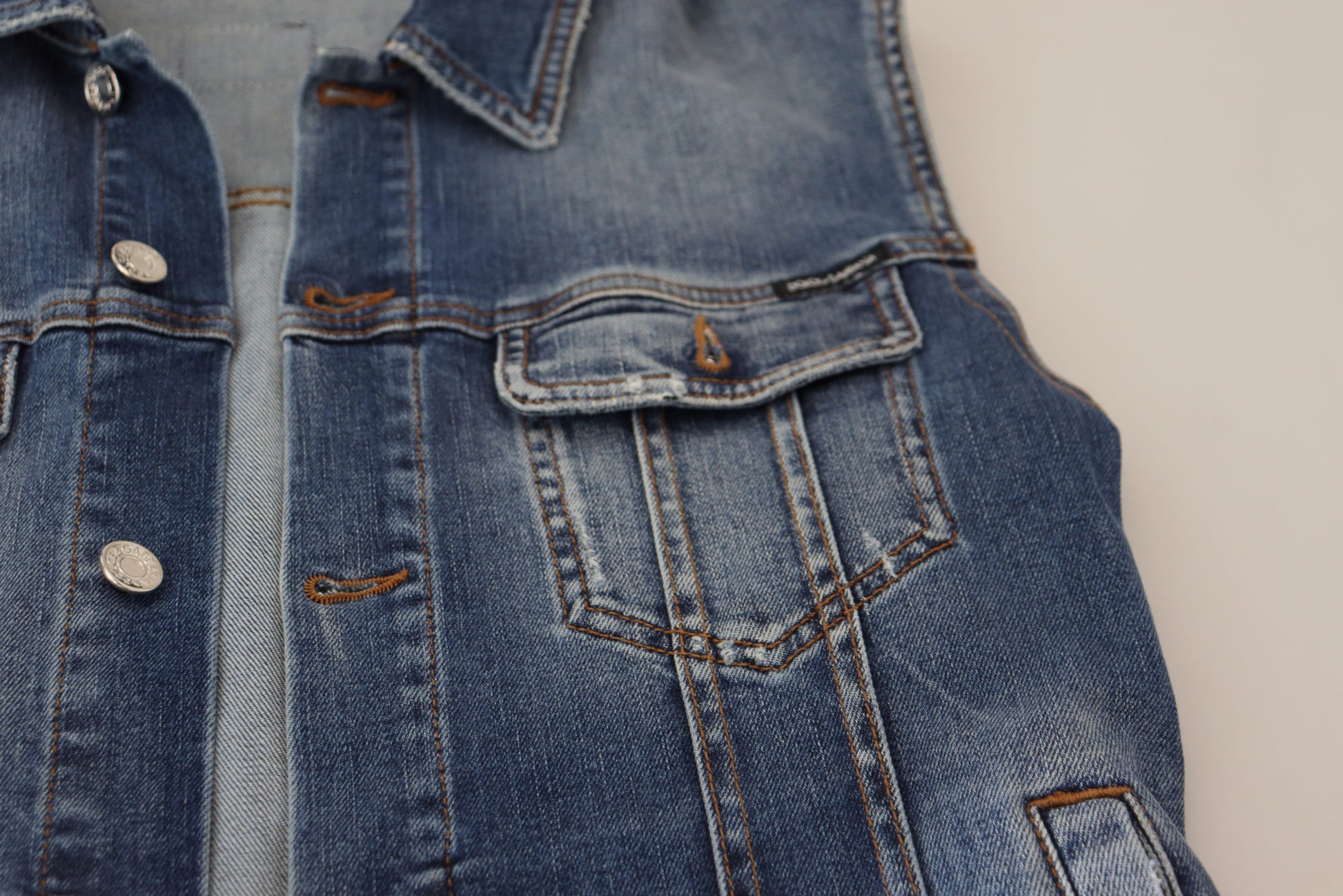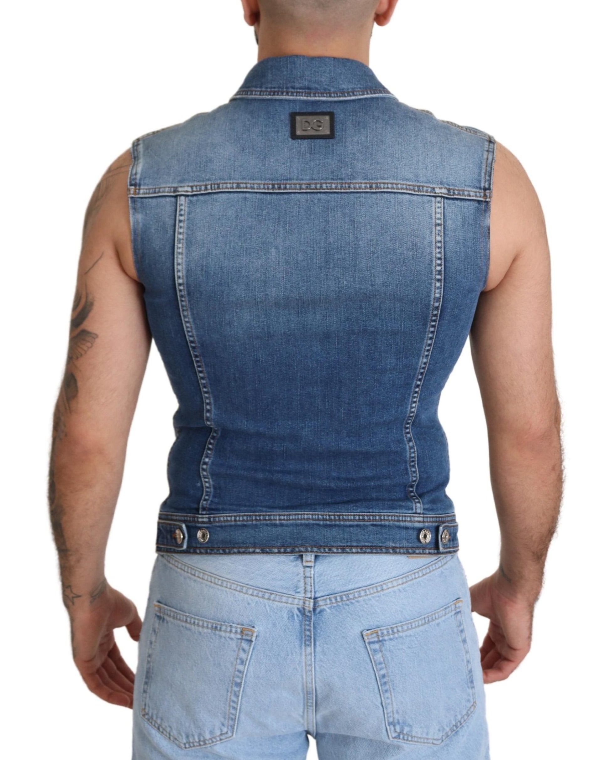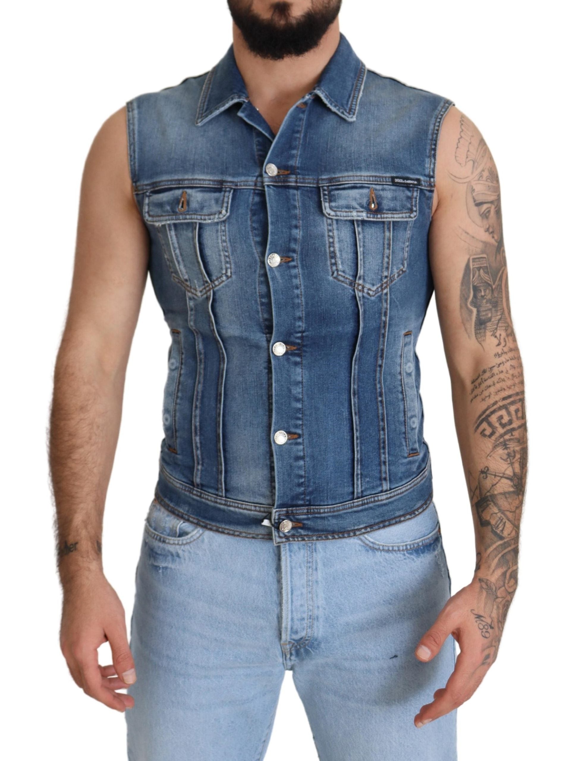Discover the epitome of Italian craftsmanship with this stunning single breasted denim vest from Dolce & Gabbana. This vest is a true statement piece for any fashion aficionado, featuring exquisite logo details and constructed with the finest materials. Perfect for layering or as a standout piece, it embodies sophistication and style. Made in Italy, it’s an authentic addition to your wardrobe, complete with tags.