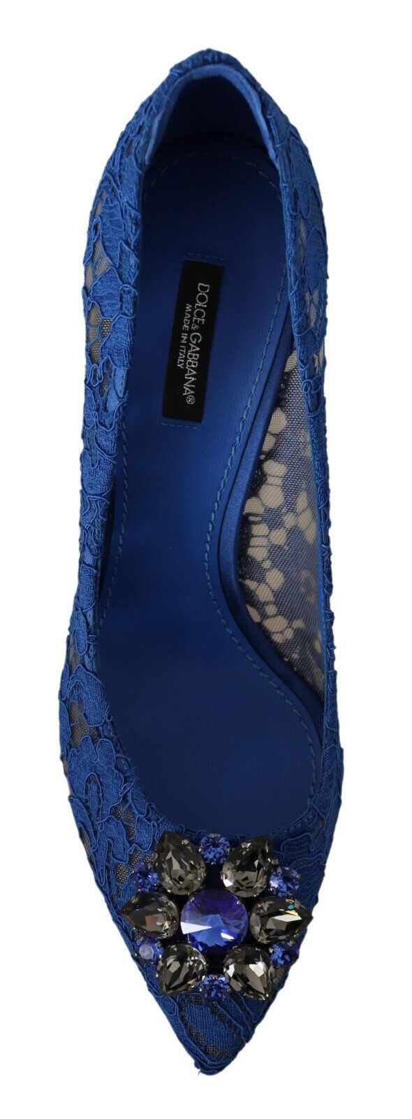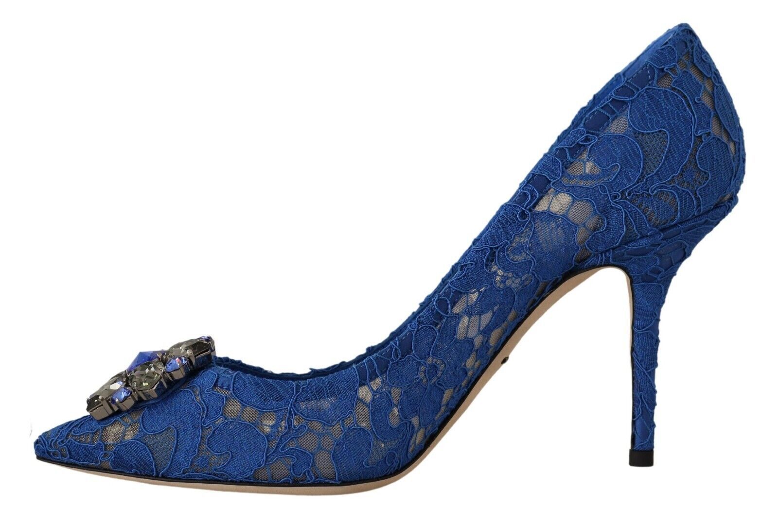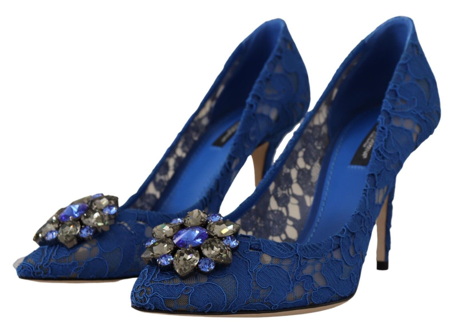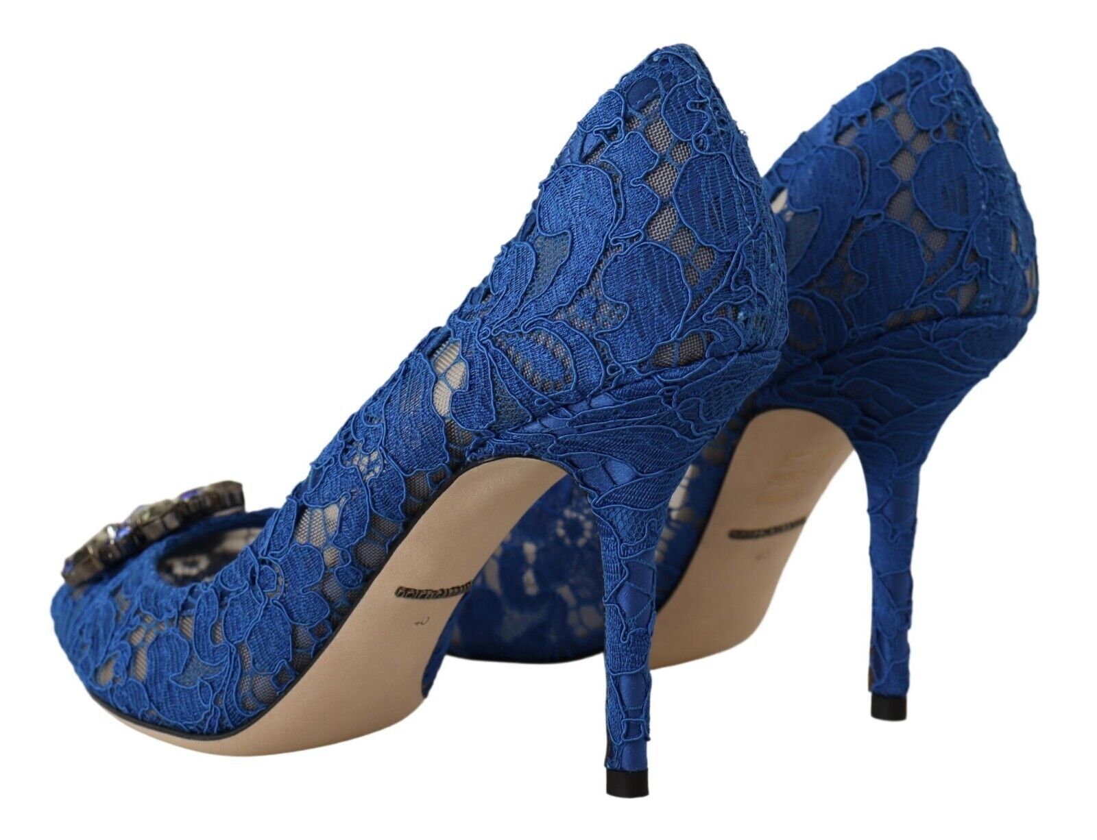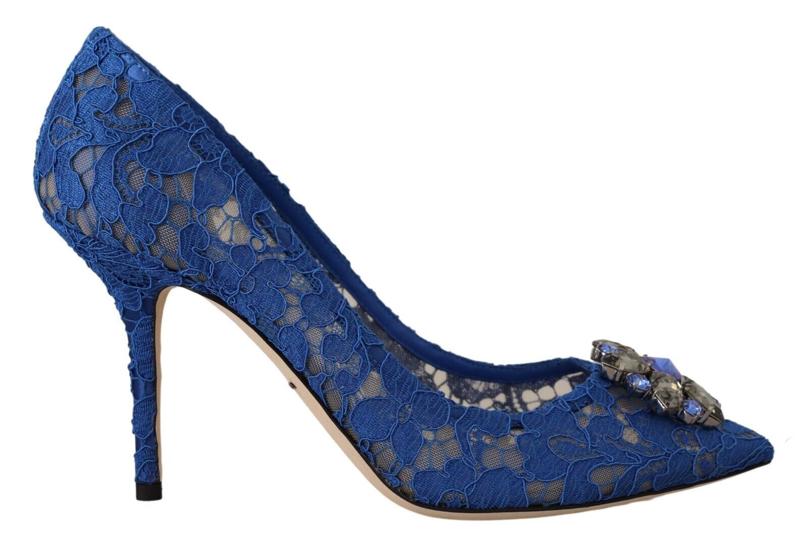 Step into luxury with these exquisite Dolce & Gabbana Taormina lace heels from the vibrant Rainbow collection. These brand new, tagged treasures feature a mesmerizing blue hue enhanced by blue and gray crystal embellishments for that extra sparkle. Crafted with care in Italy, they boast a supple leather sole adorned with the iconic logo, promising both style and comfort. Perfect for adding a touch of glamour to any sophisticated ensemble.