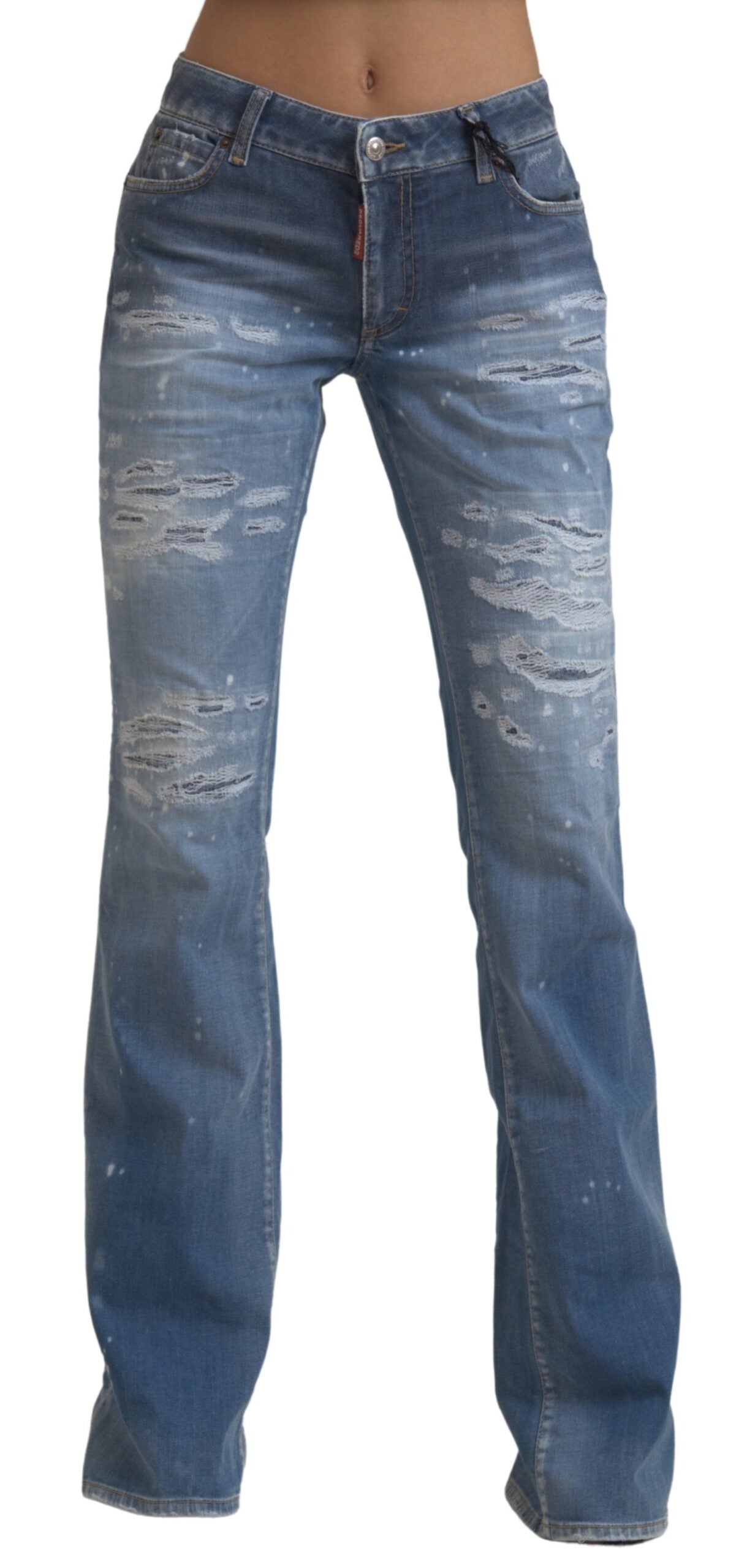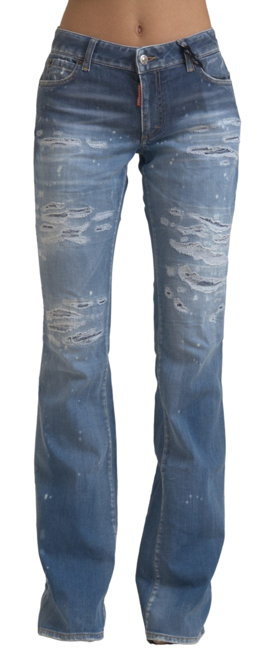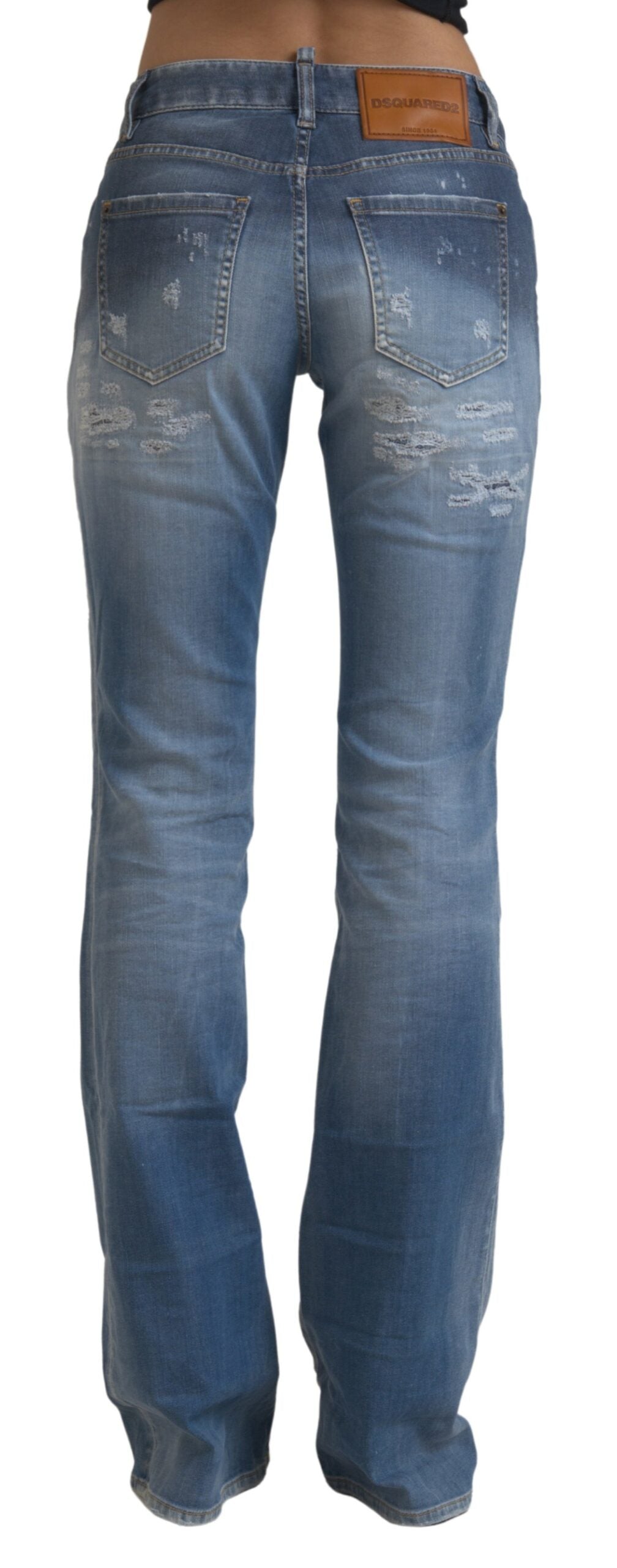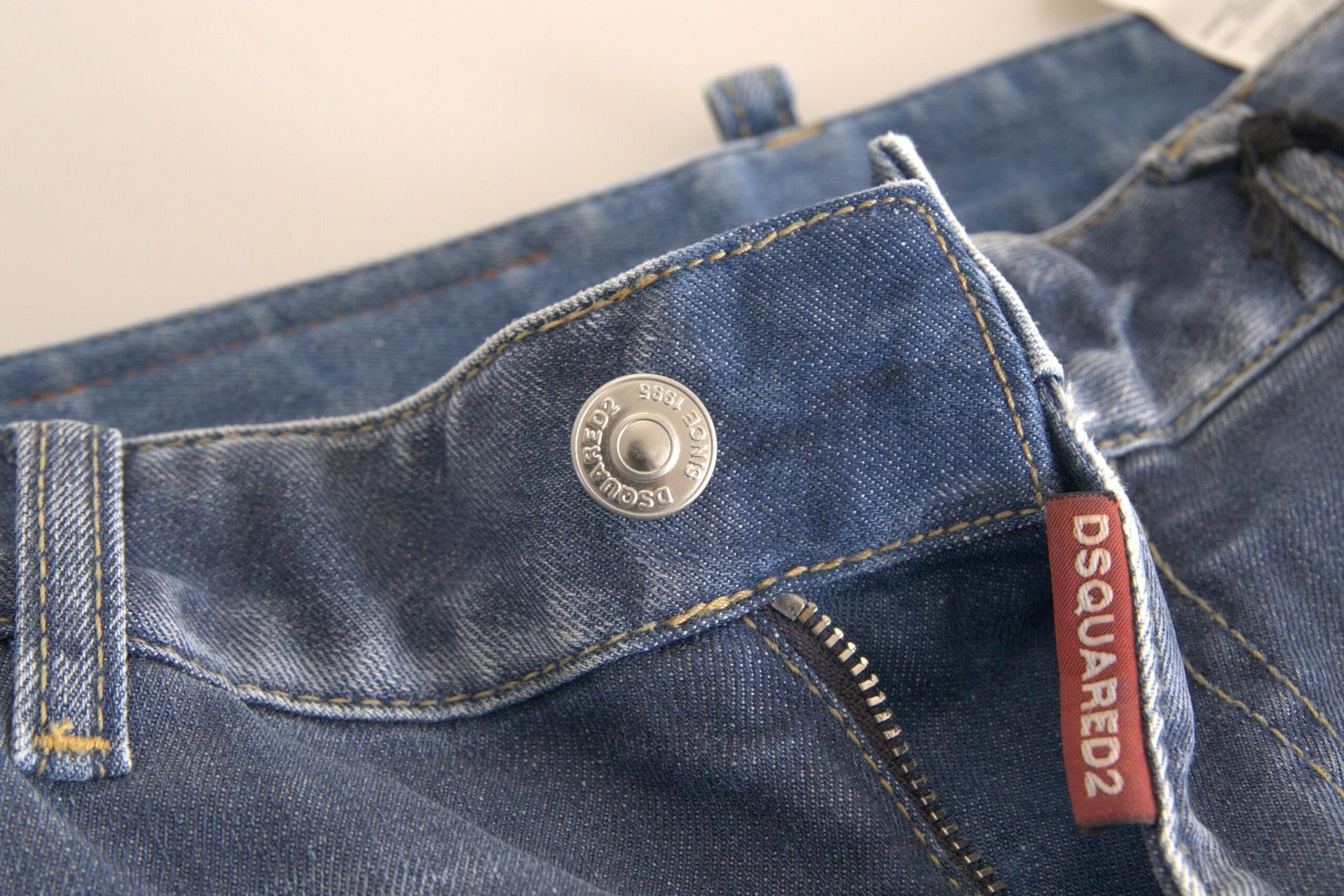 Adorn your wardrobe with the epitome of Italian craftsmanship – the elegant and chic flared denim jeans from Dsquared². Perfect for adding a touch of sophistication to your casualwear, these jeans are designed to fit regularly and provide effortless style and comfort. Their unique blend of materials ensures both durability and a slight stretch for the perfect fit. Outfitted with a convenient zipper and button closure, along with the iconic Dsquared² logo detailing, these jeans are sure to be a standout piece in your collection.