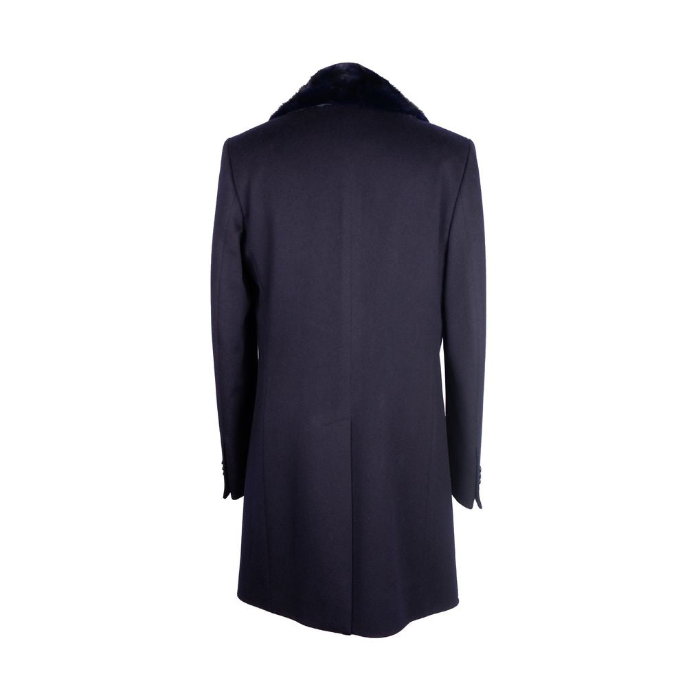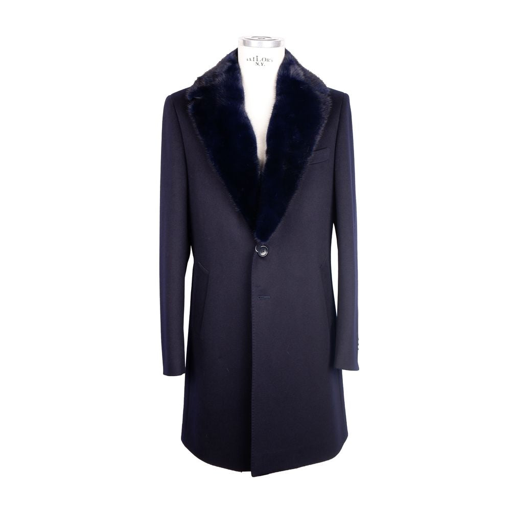 Experience the epitome of Italian sophistication with this luxurious ‘Made in Italy’ coat, crafted from the finest Loro Piana virgin wool fabric. A true sartorial masterpiece, this coat boasts a sleek blue shade that exudes elegance. Its front button closure ensures a timeless silhouette, while the detachable real mink fur collar adds a touch of lavish versatility. Loro Piana’s signature padded fabric offers an extra layer of warmth, making this the ultimate coat for those with an eye for high-end fashion and quality.