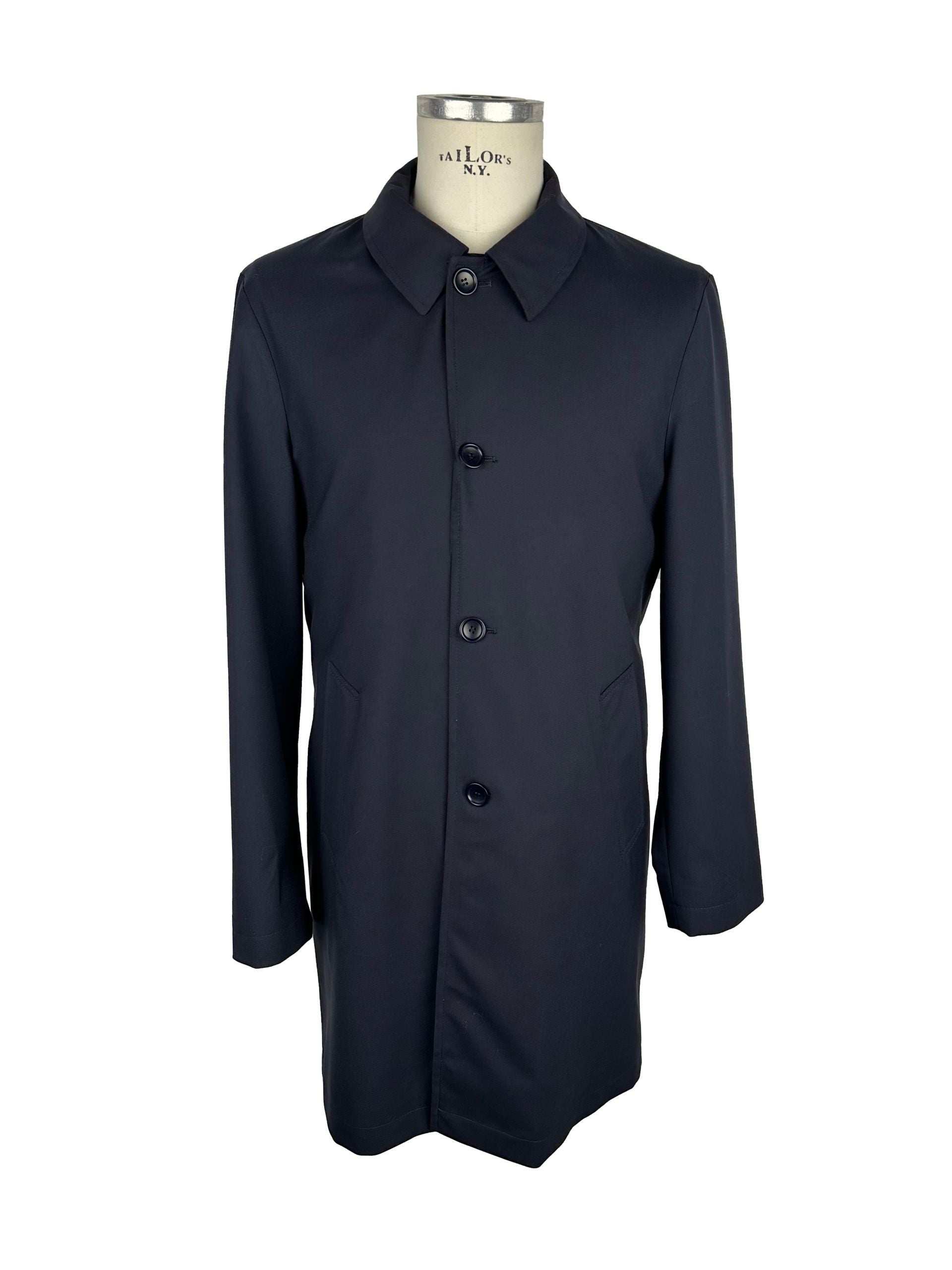 Elevate your outerwear repertoire with the epitome of Italian craftsmanship, the ‘Made in Italy’ trench. This Loro Piana garment, cut from the finest 100% virgin wool, boasts a crisp blue hue that is bound to turn heads. Impeccably constructed with a front button closure, this trench features a sophisticated white lining, complete with two internal pockets for your essentials, and two external ones for added functionality. Experience luxury with a piece that’s not just made in Italy, but tells its style story with every thread.