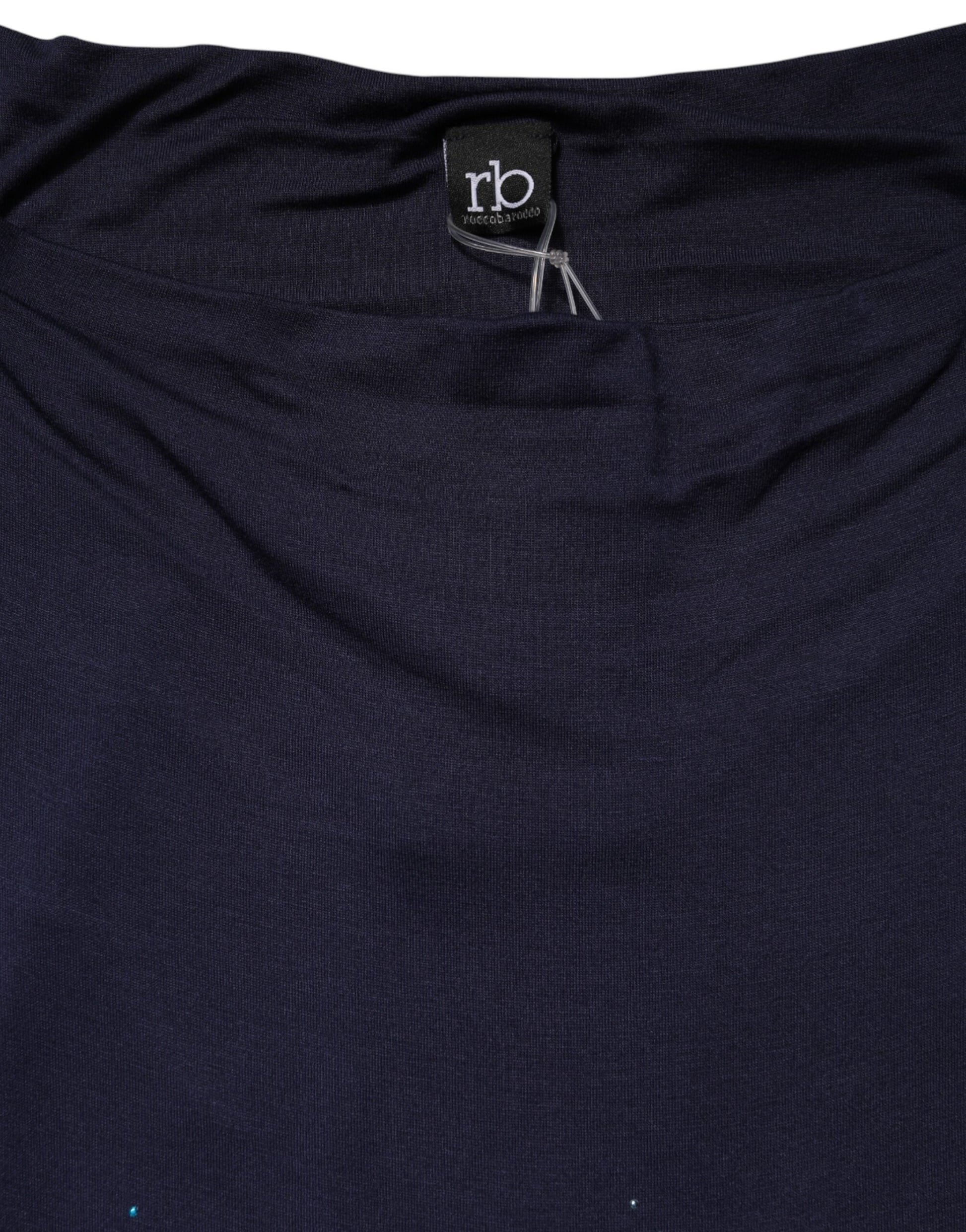 Blue Viscose Embellished Off Shoulder Mini Dress