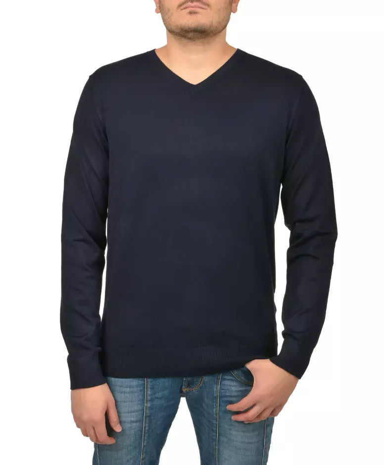 Navy Blue Viscose V-Neck Sweater – Timeless Elegance