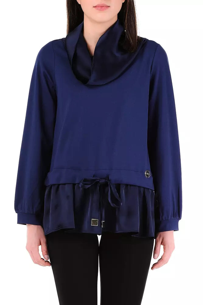 Discover the epitome of casual elegance with our viscose blend sweatshirt, adorned with sophisticated tone-on-tone satin inserts for a luxurious touch. The stunning shawl collar and satin flounce at the hem add a chic flair, perfectly complemented by the delicately placed logo plaque embellished with sparkling rhinestones. Experience the perfect marriage of comfort and style.