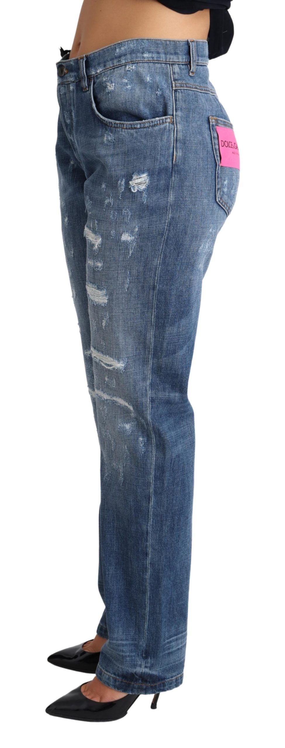 Refresh your wardrobe with these chic and polished Dolce & Gabbana high waist denim jeans. Perfectly crafted with 100% cotton, these jeans feature a flattering high waist, timeless blue color, and the exquisite craftsmanship you expect from Italy’s finest. These jeans aren’t just clothing; they’re a statement of elegance and luxury.