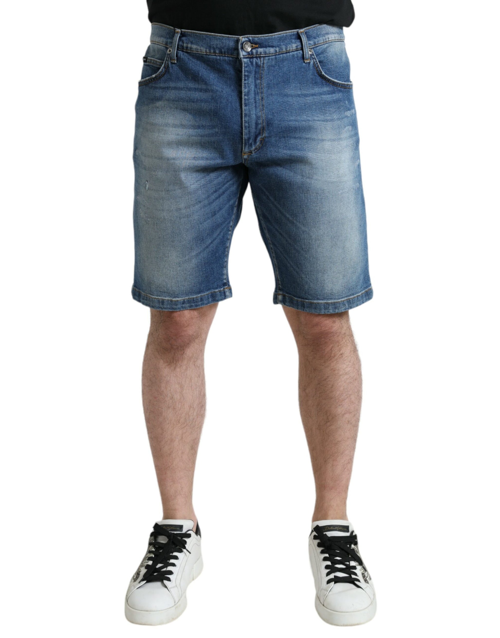 Step up your high-end fashion game with these exquisite denim Bermuda shorts from the esteemed Dolce & Gabbana. Crafted from a premium blend of 98% cotton and 2% elastane, these shorts offer both supreme comfort and a flexible fit. Perfectly structured with a classic zipper and button closure, and finished with the iconic logo details, they’re a testament to Italian craftsmanship made for the contemporary man.