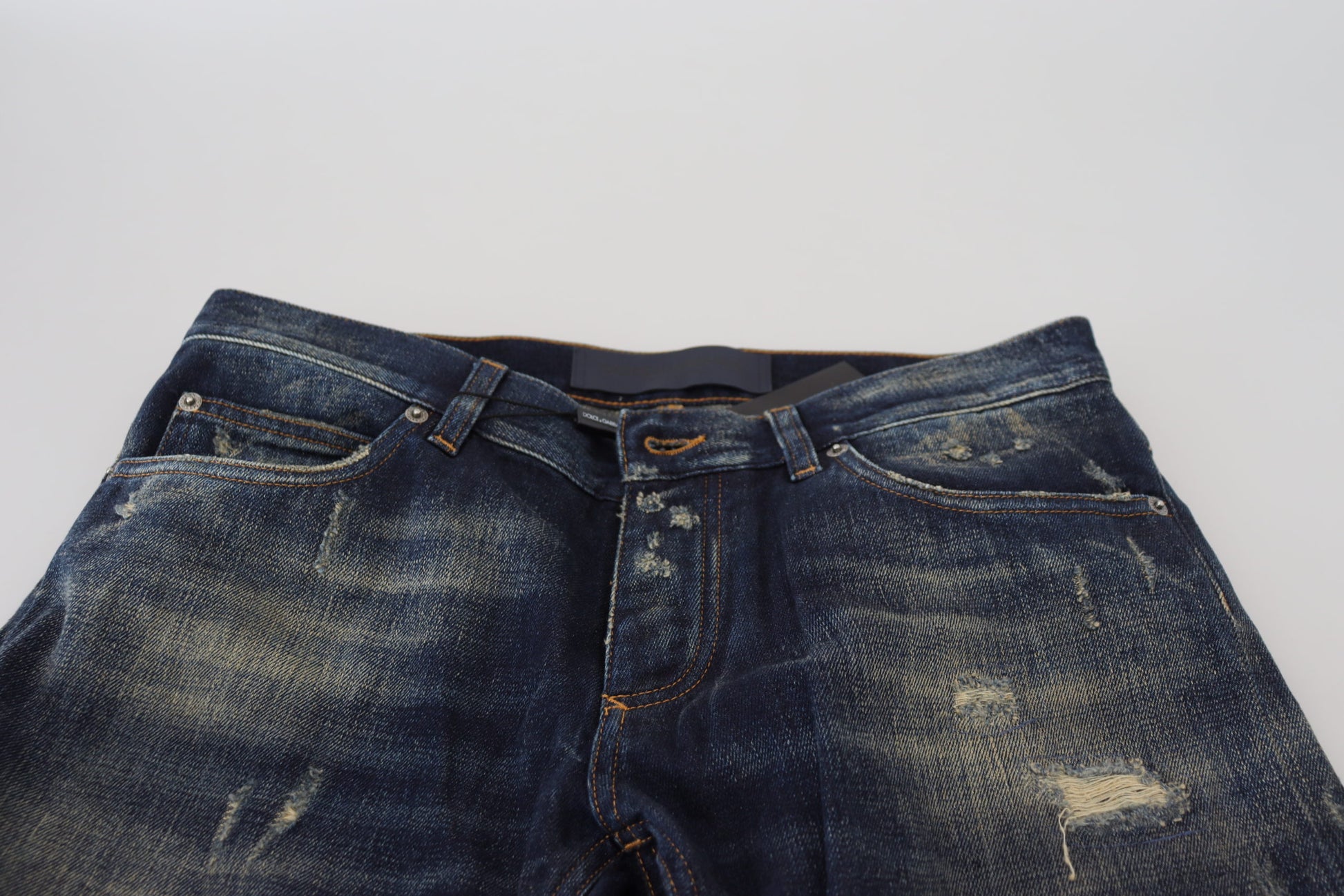 Exude sophistication with these brand new Dolce & Gabbana denim pants. Designed for those who appreciate the finer things in life, these jeans blend classic styling with contemporary fashion. Set in a captivating blue washed hue, they are a perfect addition to your curated wardrobe. Crafted from high-quality cotton, you can expect nothing less than luxurious comfort and durability. Expertly made in Italy, these jeans feature a convenient zipper closure and are adorned with the iconic logo details that showcase your taste for exclusive brands.
